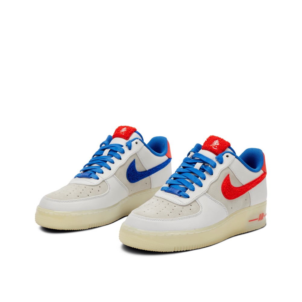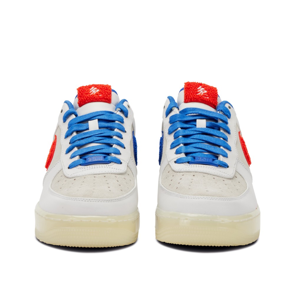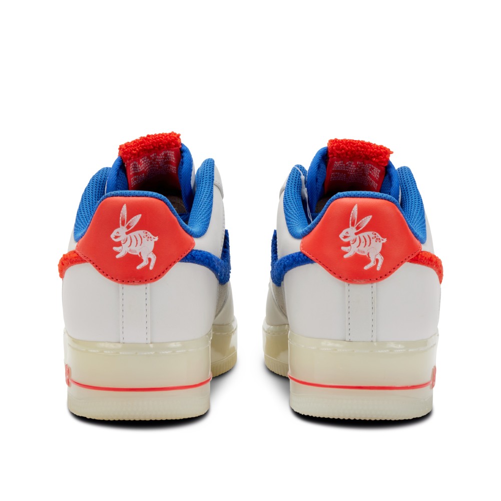 This limited edition Air Force 1 was released in honor of the Chinese New Year in 2011, the Year of the Rabbit. Inspired by the popular Shanghai candy, White Rabbit, the sneaker borrows inspiration from the color palette of the sweets. The polished, sleek sneaker features shades of white on a premium leather upper, along with off-white suede paneling and toe box that sits atop a translucent white midsole. The pair features a chenille Swoosh is red on the lateral side and blue on the medial and is complimented by a vivid blue topline, waxed blue laces and a ?2011? deubr? to match. In tribute to the New Year, the Chinese character ? (rabbit) is stitched on the chenille tongue tag and an animated rabbit stamped on the back heel. The sneaker insoles feature unique branding dedicated to the theme. The pair comes with red shoelaces in addition to blue.