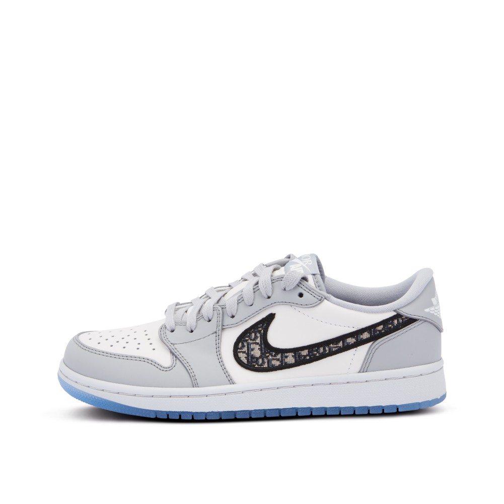 Both the High and Low styles feature the Dior Gray color palette, an homage to one of Christian Dior?s most-loved hues. The shoes were handcrafted in Italy from calfskin leather and accented with Dior?s signature Oblique monogram jacquard Swooshes. Dior and Air Jordan?s iconic branding are mixed on the Wings logo, tongue labels and outsole graphics.