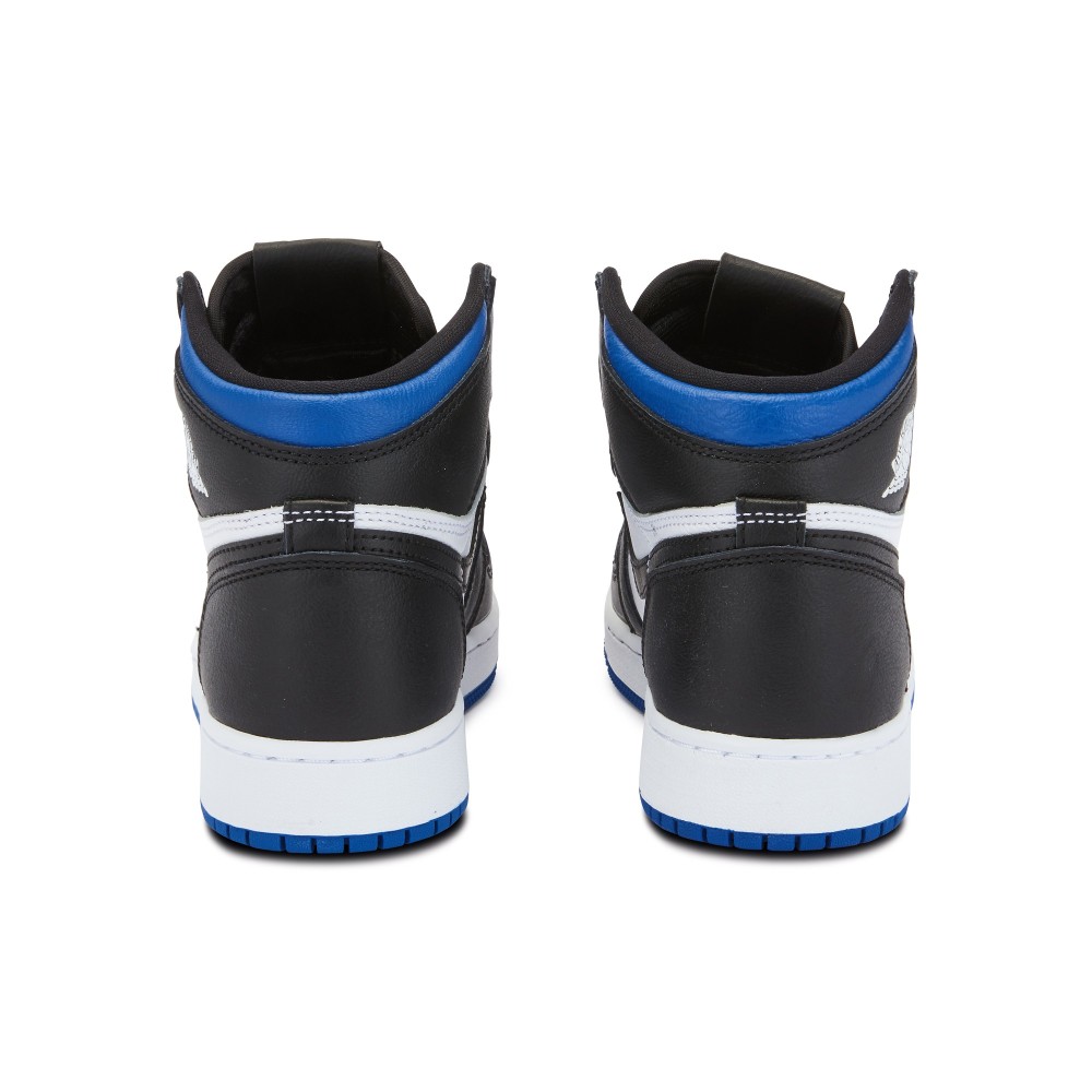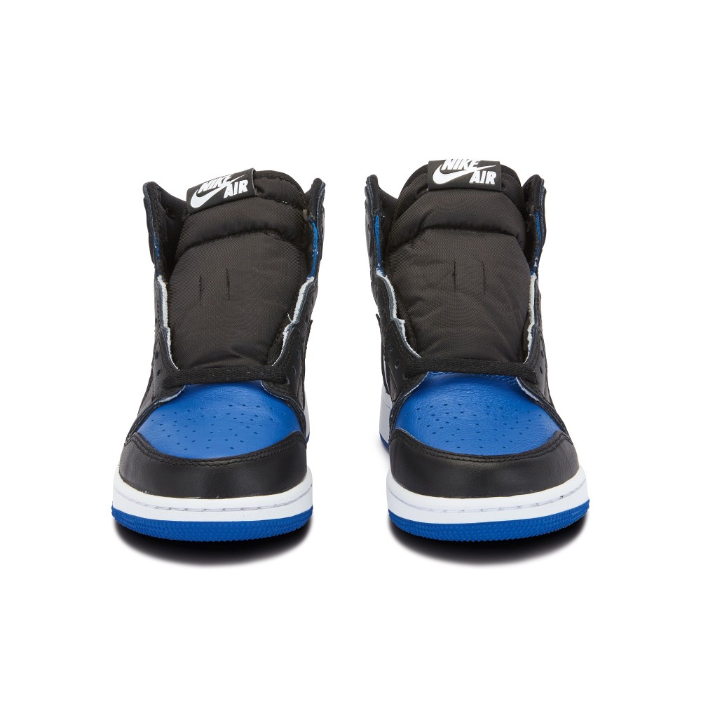 The Air Jordan Retro High OG ‘Royal Toe’ honors the original Air Jordan “Royal.? The shoe features a white leather upper with contrasting black leather overlays and a Royal Blue toe, ankle panel, and sole. Paying tribute to the original 1985 Jordan 1, this shoe also features the Jordan Wings logo, Nike Air branding on the nylon tongue, and signature black leather Nike Swoosh.
