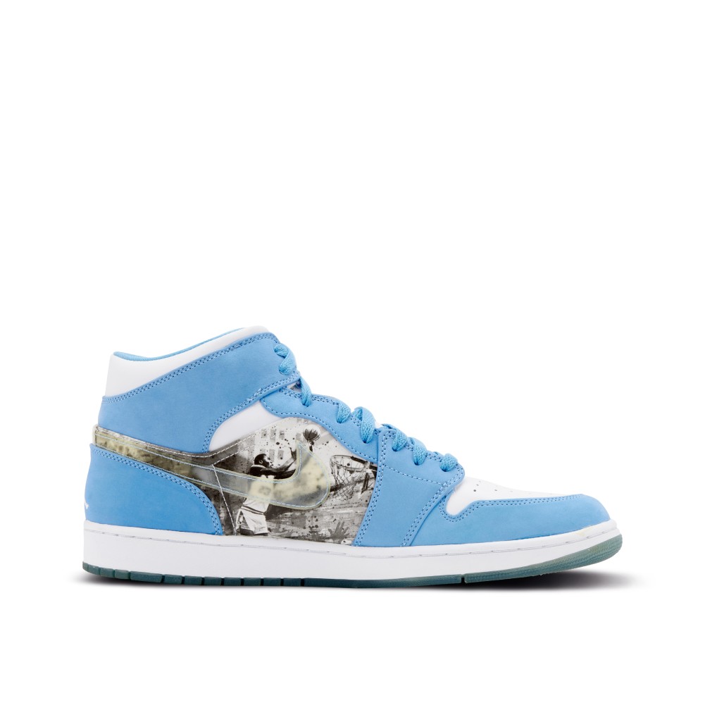 - Blue and white colorway honors Michael Jordan’s alma mater, the University of North Carolina.