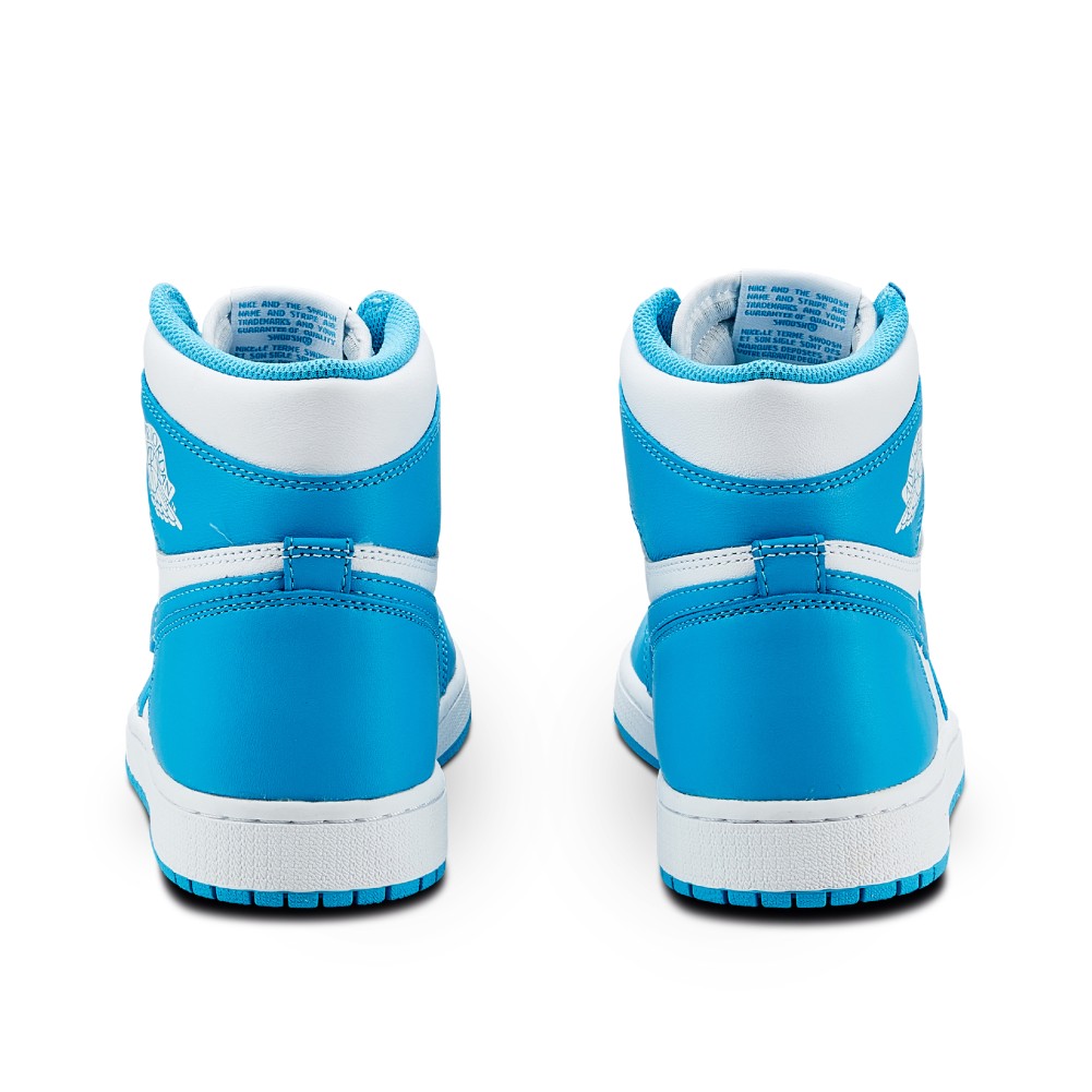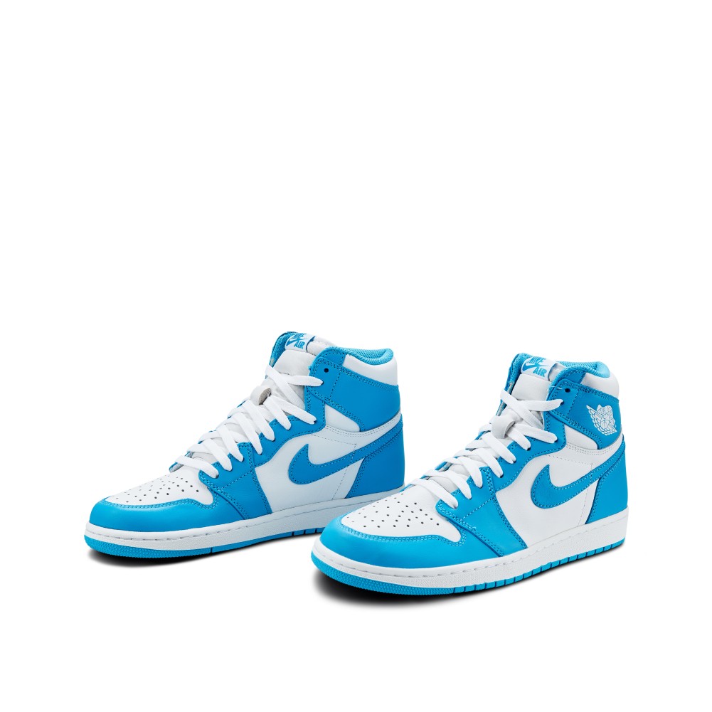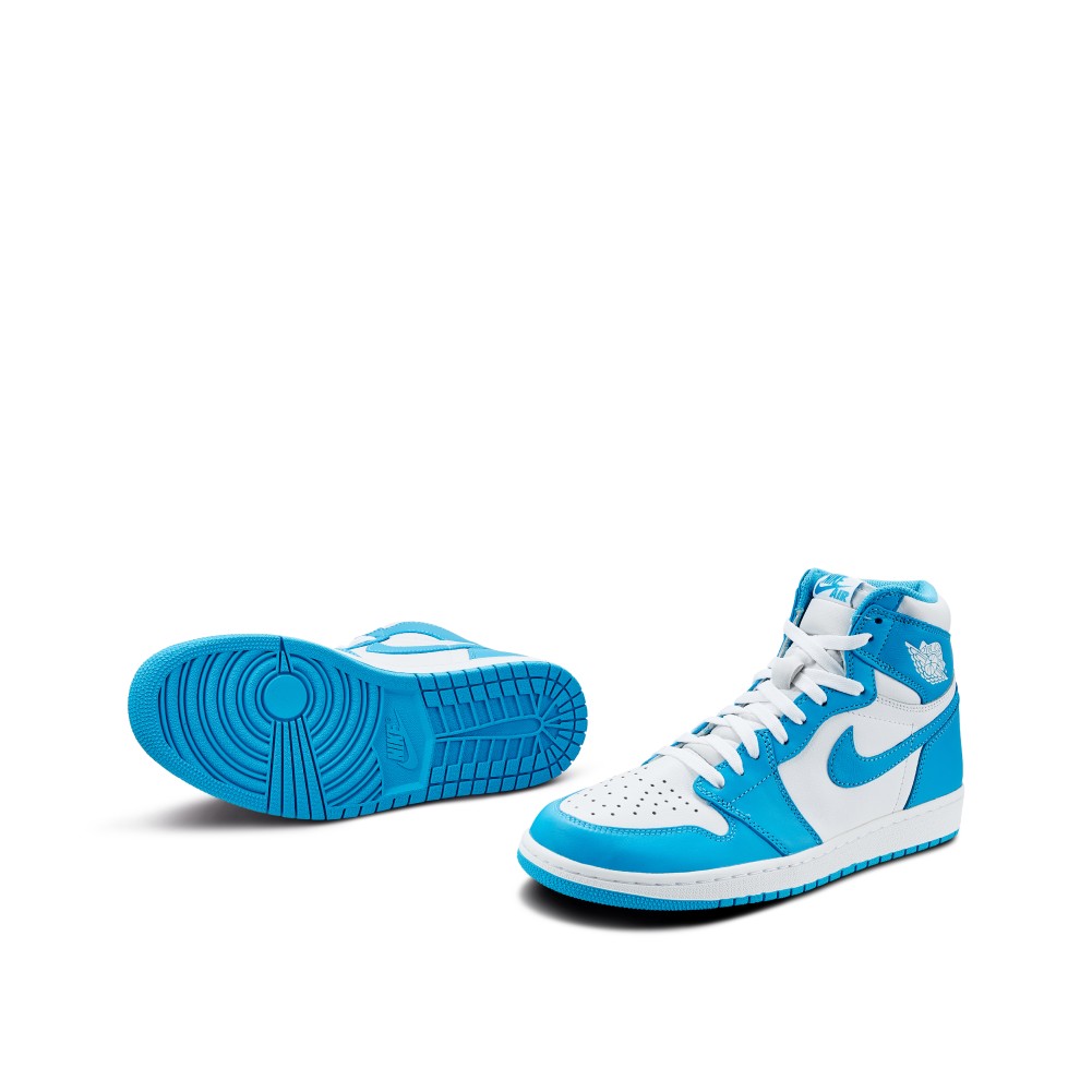 Released in 1985 as one of the original Air Jordan 1 colorways, the Air Jordan 1 Retro High OG ?UNC? was retro?ed for the Jordan Brand?s Holiday 2015 retro pack. The powder blue and white colorway is tribute to Michael Jordan?s alma mater, University of North Carolina, where he won the 1982 NCAA National Championship his freshman year. The AJ1 silhouette features signature branding details like the Nike Air logo on the tongue and the Air Jordan ?Wings? on the collar. To complete the design, the outsole is finished in the same powder blue.