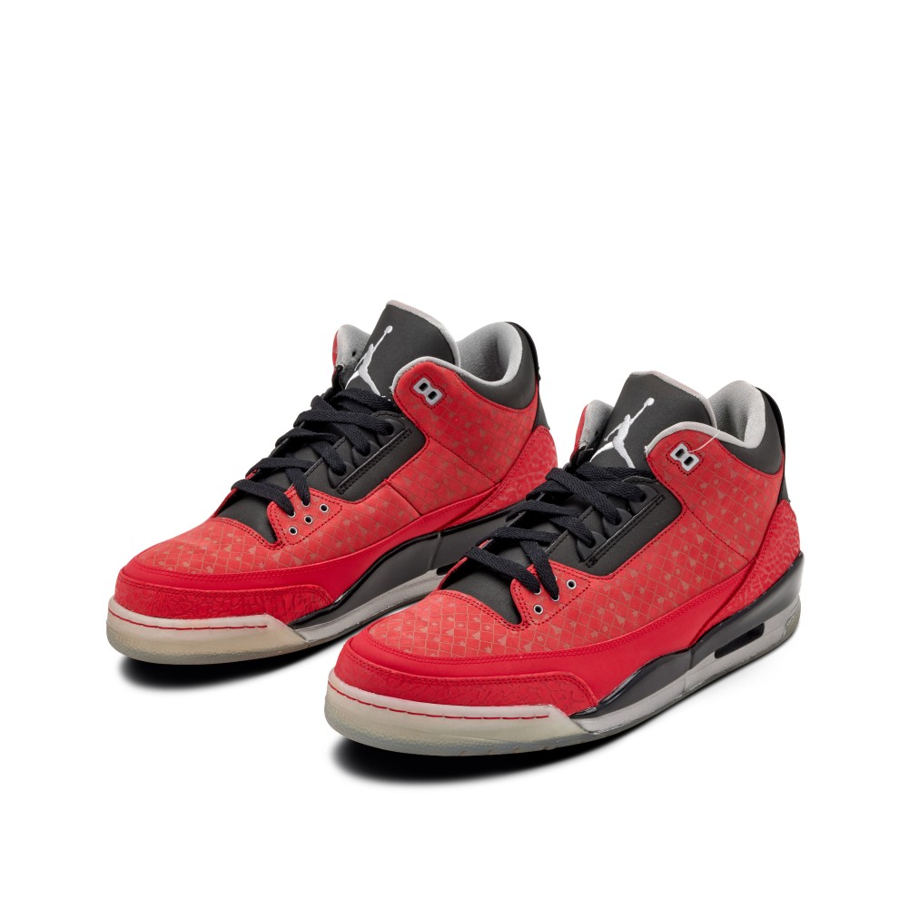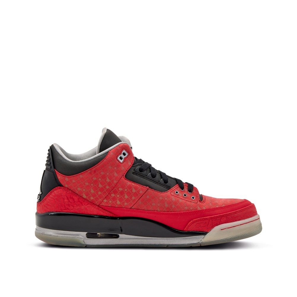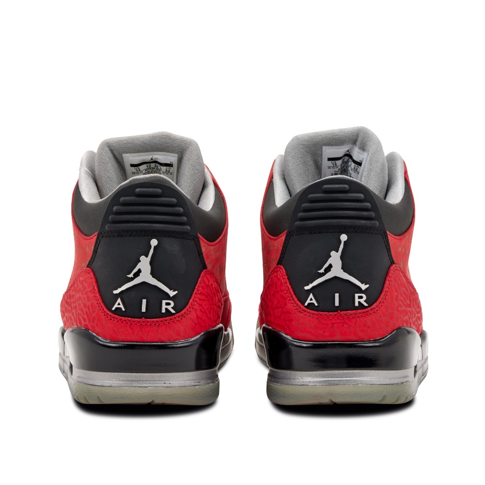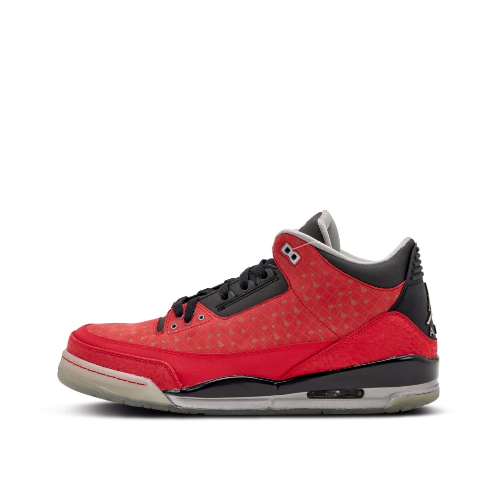 This Nike Air Jordan 3 Retro Doernbecher was created in 2010 by Cole Johanson of the OHSU Doernbecher Children?s Hospital. This sneaker, like all Doernbecher releases, features a multitude of symbols and designs chosen by a select patient of the OHSU Doernbecher Children?s Hospital. Dressed in a red upper with black accents throughout, the shoe is immediately identifiable. Unique to this pair is the red elephant print on the toe box.