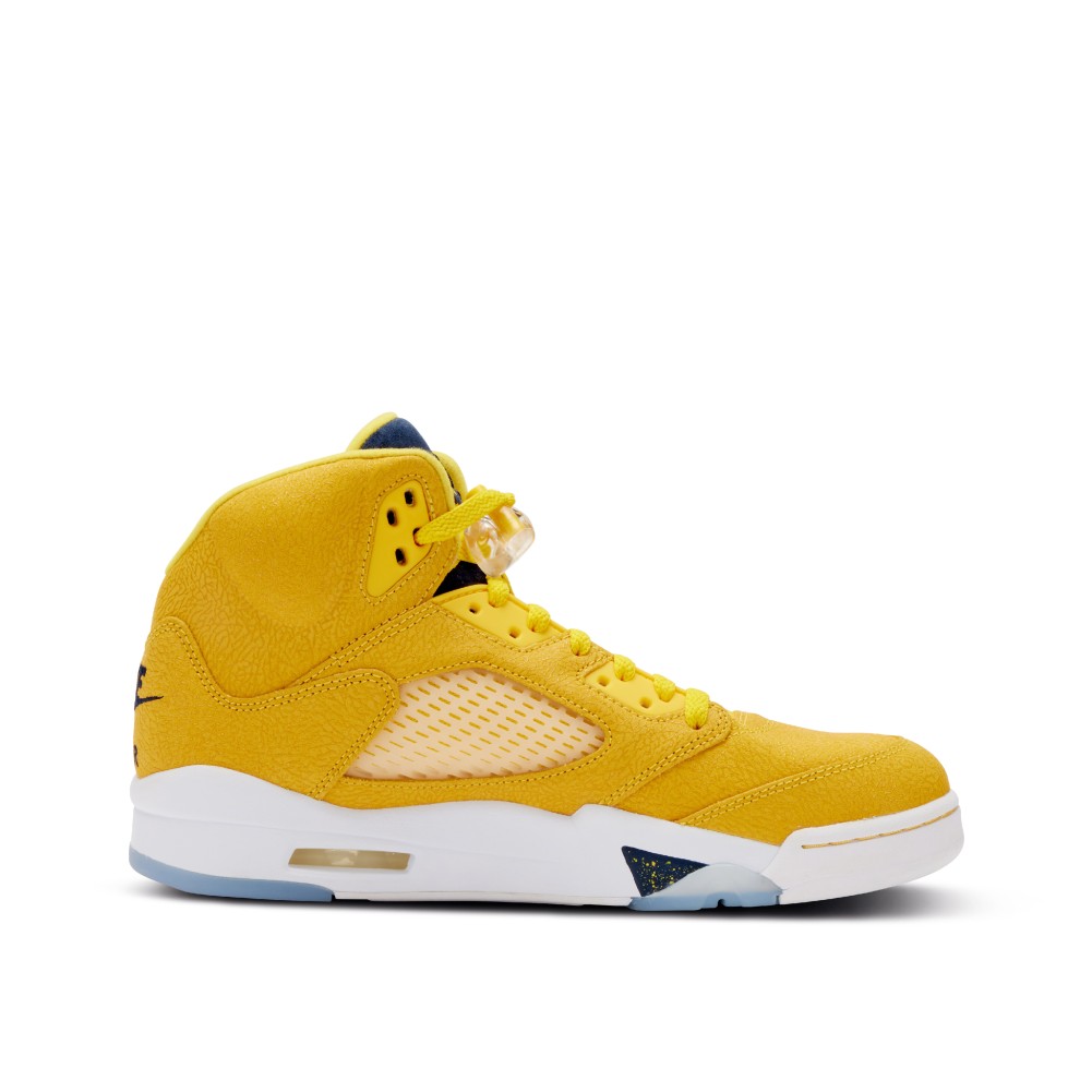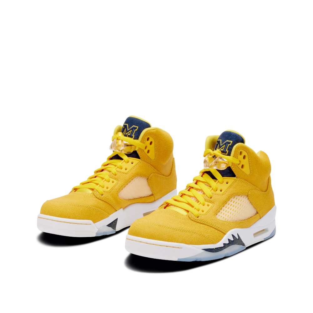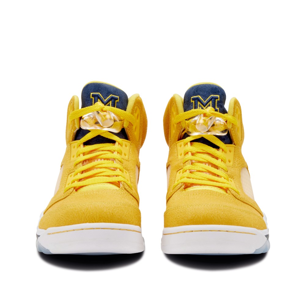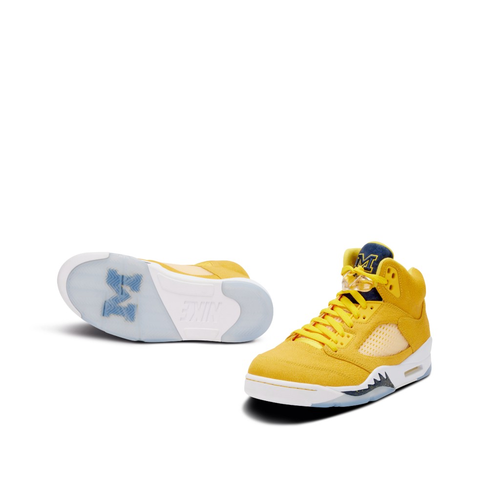 The Nike Air Jordan 5 Retro PE ?Michigan? was released by the Jordan Brand as an exclusive for the University of Michigan Wolverines. Following the likes of the UNC Tar Heels, Oklahoma Sooners and Florida Gators, these collegiate PEs were designed by Nike as an opportunity to highlight the team-issued colorways.