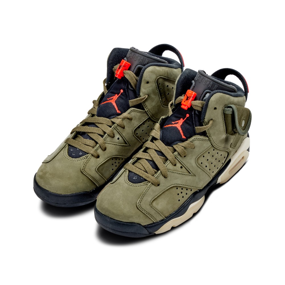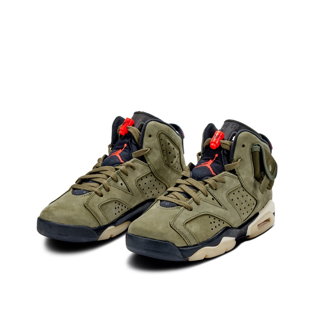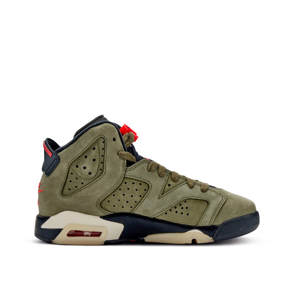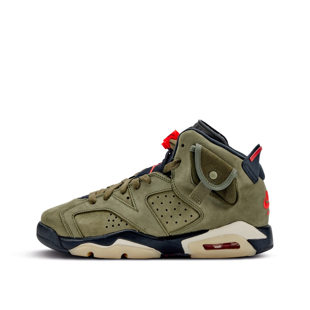 With a history of successful and coveted collaborations, the Air Jordan 6 Retro “Olive” added another iconic Nike update to the Travis Scott collection. This youth-size take on the AJ 6, which is identical to the adult version Scott debuted while performing during halftime of Super Bowl 53, released in October 2019. It features a Medium Olive, Black, Sail and University Red colorway along with several unique elements: a small pocket with a snap on the collar, a nubuck and suede upper, Scott’s “Cactus Jack” logo on the heel and a glow-in-the-dark translucent outsole.