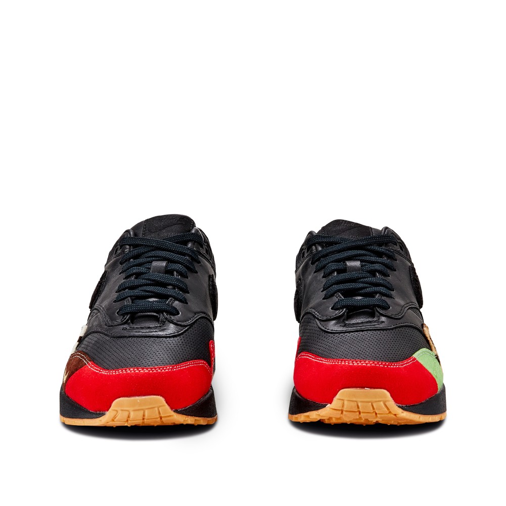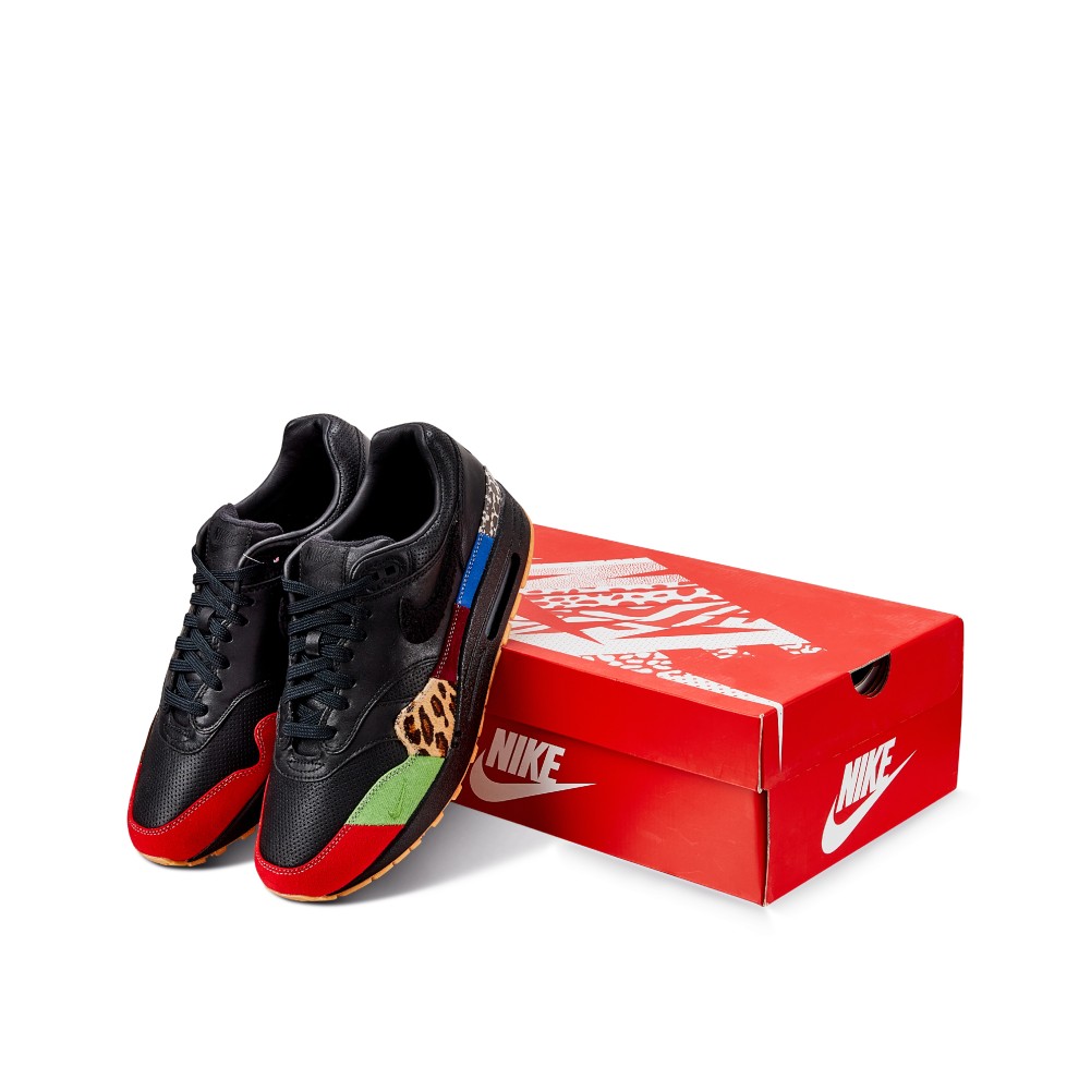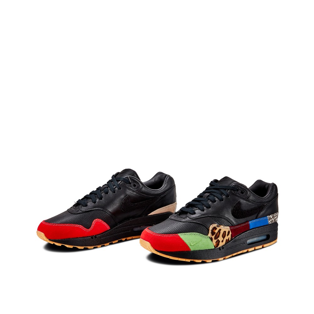 The Nike Air Max 1 Master pays tribute to some of the rarest and most sought-after colorways of the Air Max 1. Released in 2017, the pair is a limited release in honor of the Air Max 1 30th anniversary. Dressed in a black leather upper, the shoe borrows a terry Swoosh from the Air Max 1 Premium “Patta X Parra” and a perforated toe box and sock lining from the Air Max 1 “Kid Robot.” The decorated mudguard features designs from Air Max 1s through the years, including the “Beast Pack,” Atmos? Air Max 1 “Safari,” Patta?s “Chlorophyll” and “Parra” models, and the original blue and red colorways.