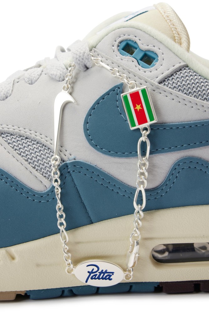 Amsterdam retailer Patta has released a set of two iterations of the Air Max 1 sneaker. Offered here is the ?Monarch? colorway that features a design reminiscent of the original Air Max 1 but remixes the mudguard with a jagged wavy section instead of the traditional smooth cut. This particular design element is to embody ?the cultural shifts and enduring influence that Patta has had on its greater community and industry.? The upper which features a Metallic Silver and Pure Platinum base is contrasted with orange ‘Monarch’ accents. Finally, the same color Swoosh and outsole sits atop a cream midsole.