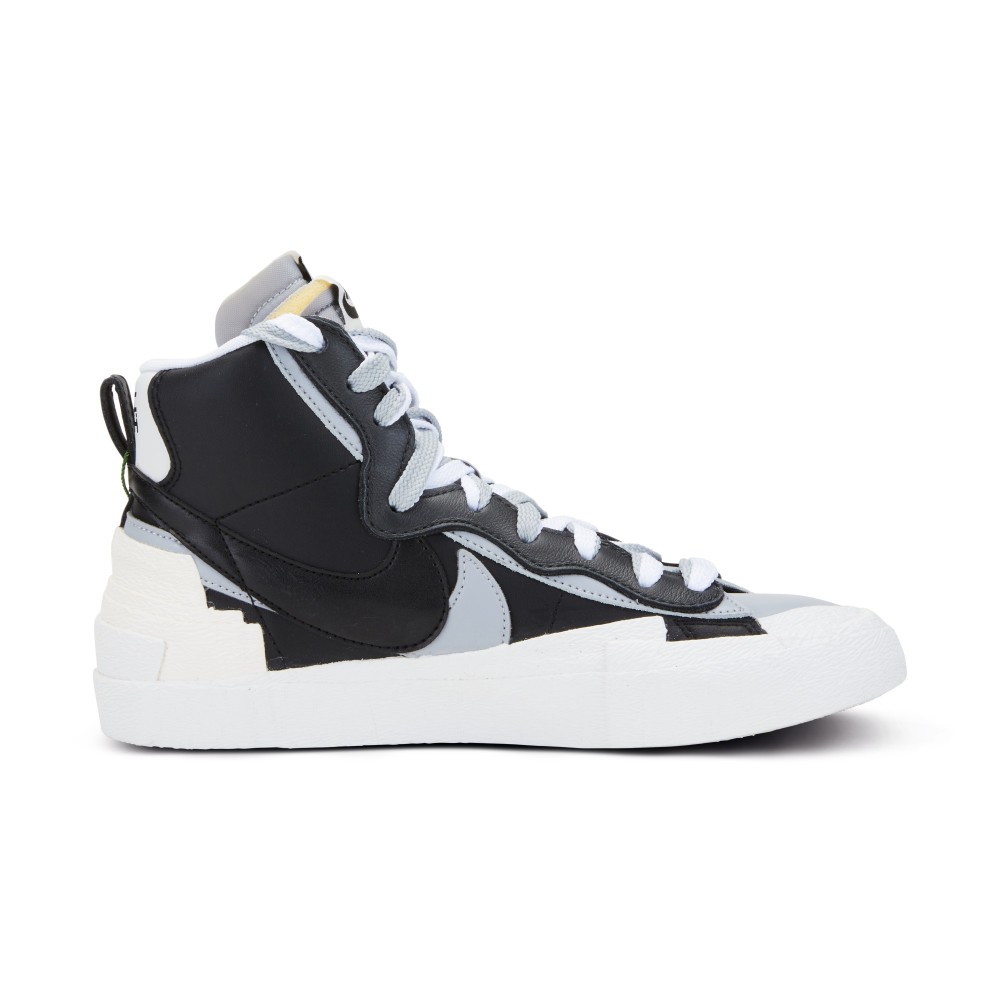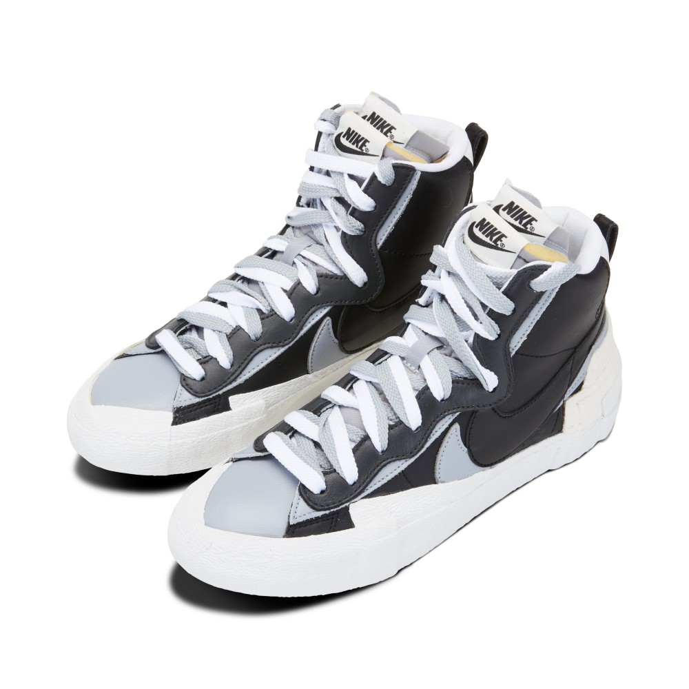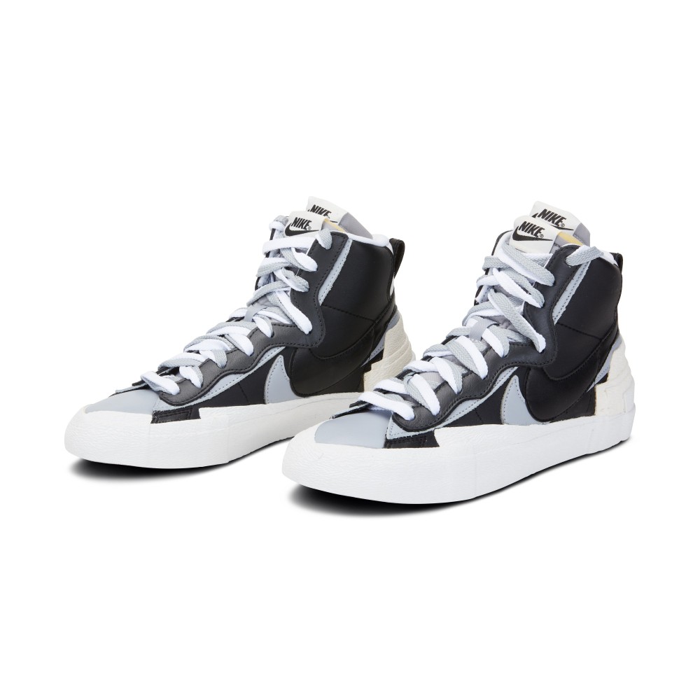 The infamous Japanese luxury fashion brand, Sacai, collaborated with Nike to create this limited edition Sacai x Nike shoe. The Nike Sacai Blazer Mid was first released at the Sacai fashion show during Paris Fashion Week in Spring 2019. The shoe combines features from the Dunk High and the Blazer, adding layered accents to the already coveted shoe. Double Swooshes, tongues, laces and overlays adorn the shoe. The black upper base is accented with grey and white details, while the heel is finished with exaggerated layered accents. This version was released in October of 2019.