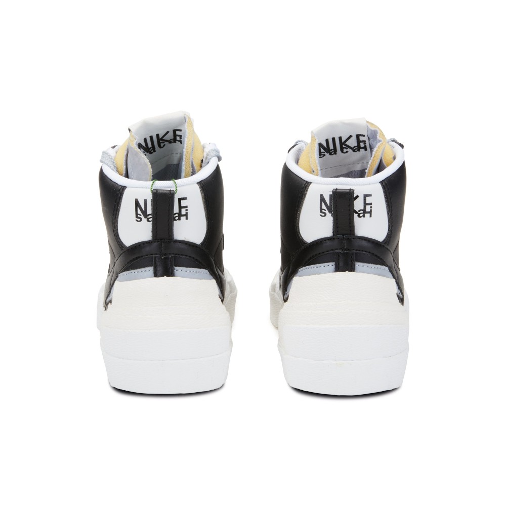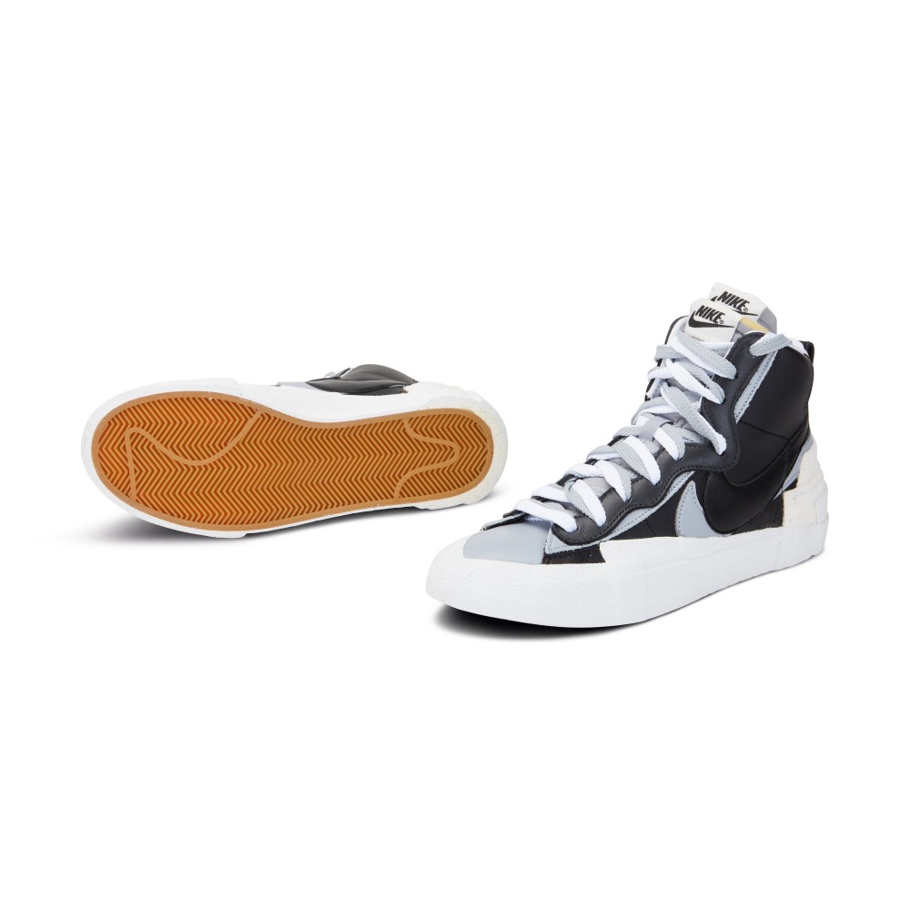 The infamous Japanese luxury fashion brand, Sacai, collaborated with Nike to create this limited edition Sacai x Nike shoe. The Nike Sacai Blazer Mid was first released at the Sacai fashion show during Paris Fashion Week in Spring 2019. The shoe combines features from the Dunk High and the Blazer, adding layered accents to the already coveted shoe. Double Swooshes, tongues, laces and overlays adorn the shoe. The black upper base is accented with grey and white details, while the heel is finished with exaggerated layered accents. This version was released in October of 2019.