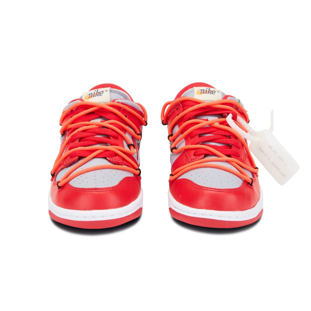 Virgil Abloh pays homage to skate culture?s adoption of 1980?s Nike Basketball silhouettes with the Nike Dunk Low Off-White University Red. When Nike unveiled the Dunk as the centerpiece of their Nike College Color?s program in 1985, seven different colleges were represented in the first colorways offered. The university red colorway tributes UNLV?s school colors. A Wolf Grey leather base covers the toe, mid-panel and ankle collar. University Red leather overlays contrast the grey panels on the forefoot, toe, eyelets, and heel with an orange flagged red Swoosh branding located on the mid-panel. Traditional red laces appear where they have always been, though Abloh opts to add a second set of bright orange laces in a staggered fashion throughout the upper. Completing the look of the limited edition collaboration is a white rubber midsole with a red outsole. Originally released in 1985, Dunks have become one of the most iconic sneaker styles of all time and a blank canvas for design inspiration.