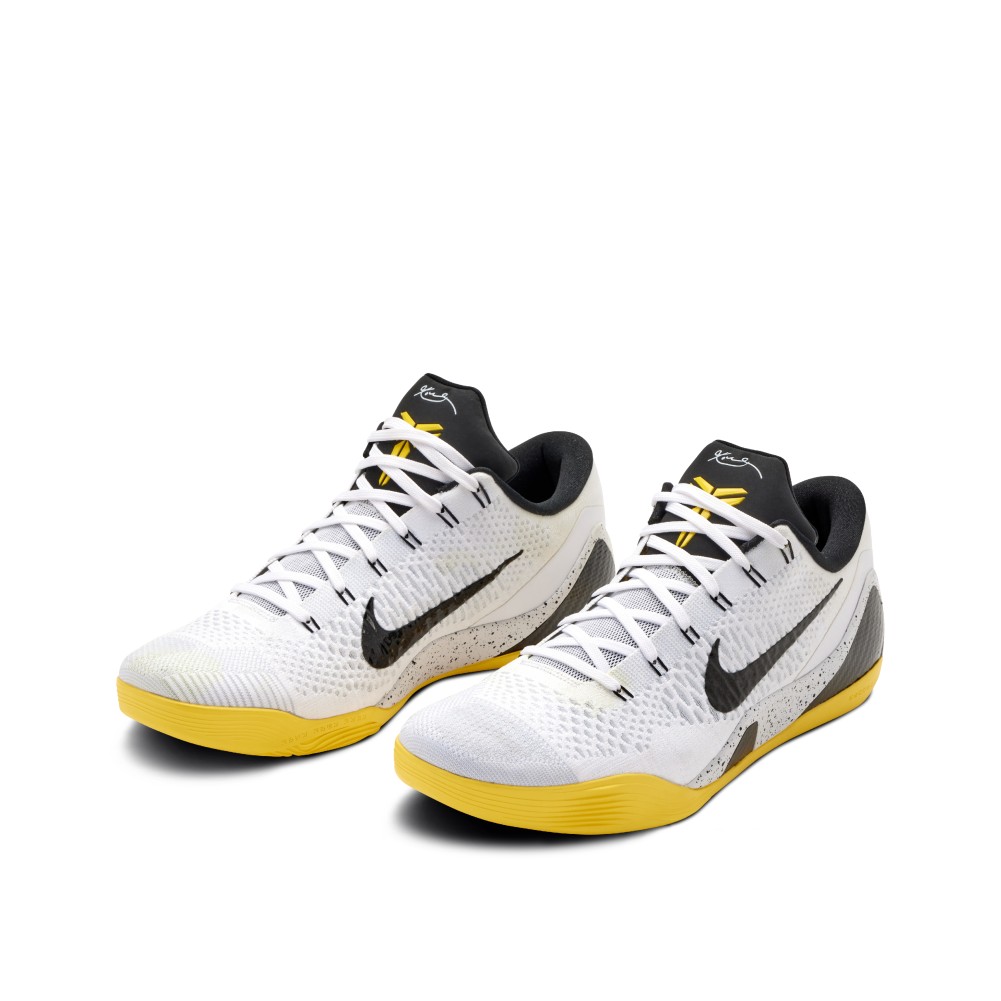 The Nike Kobe 9 Elite Low PE, created in the fall of 2014, sports a Lakers-inspired colorway of white, yellow,and black. Player-exclusive sneakers are distinguished with unique colorways and designs that aren’t available to the public. Given only to players, coaches and staff, PE shoes rarely make it to the resale market.
