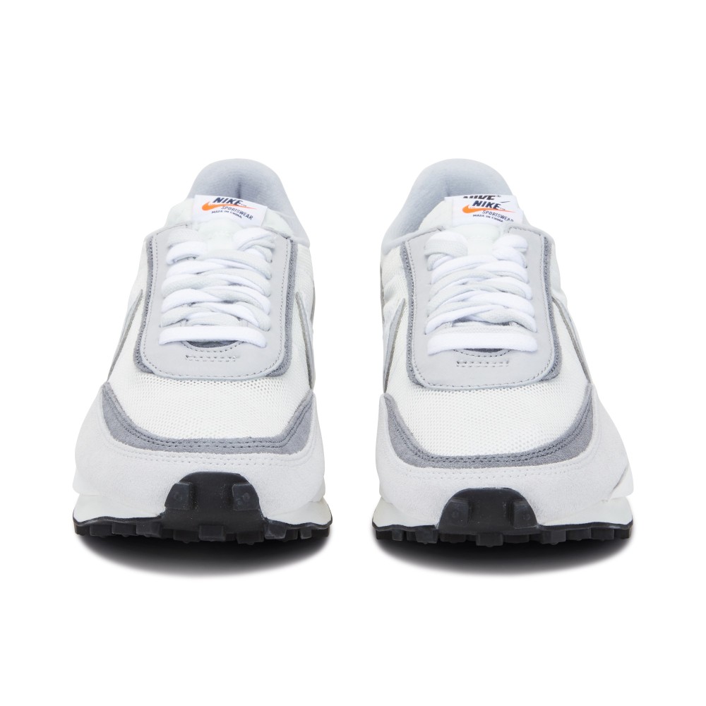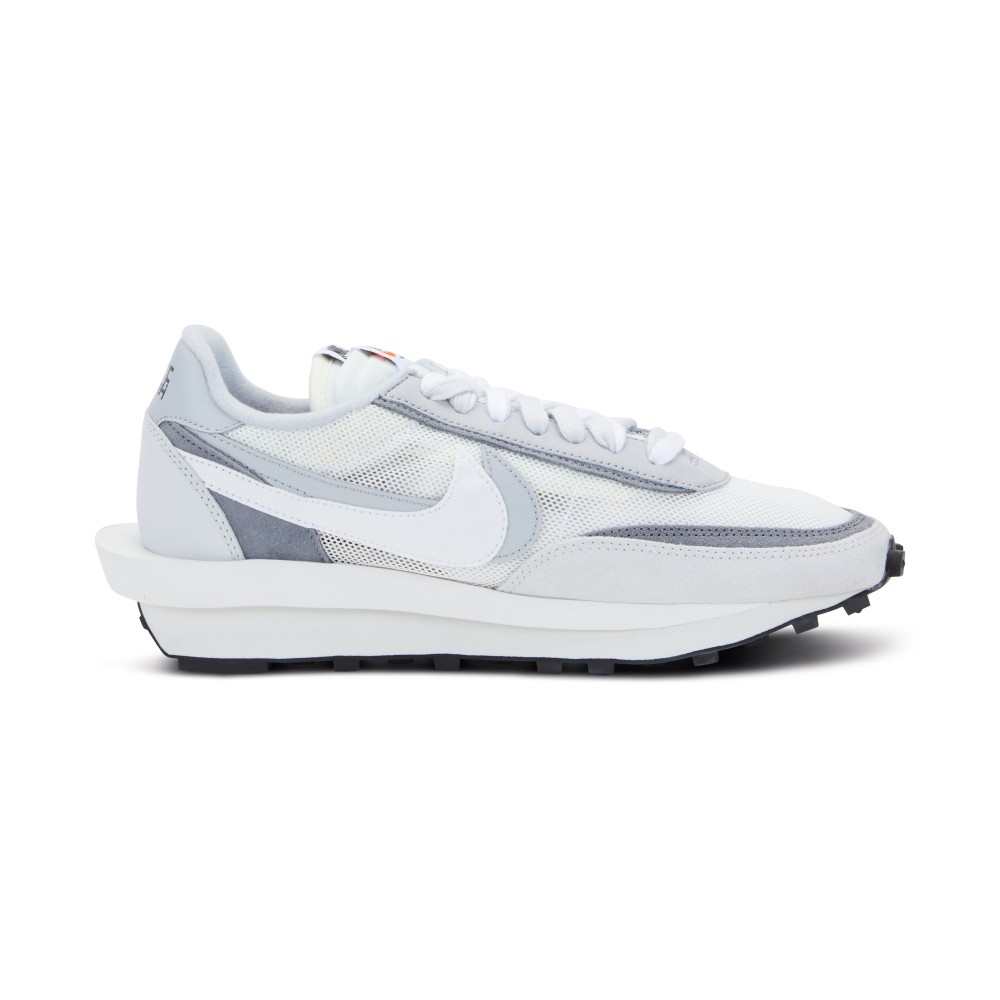 Nike collaborated with the infamous Japanese luxury fashion brand, Sacai, to create a hybrid of the Nike LDV and Waffle Racer. The shoe debuted during the Sacai Fall/Winter 2019 runway show in Paris and stays true to the brands vision of creating unique and timeless fashion. The Sacai x LD Waffle ‘Summit White’ features wolf grey and white leather accents, double stacked Nike Swooshes, tongues, overlays and laces. The mid panel and toe are constructed of a breathable ‘Summit White’ mesh, while an extended white outsole sits between a grey heel cup and black outsole. To complete the look, a double stacked Nike x Sacai logo is printed on the heel tab. This shoe was released in September 2019.