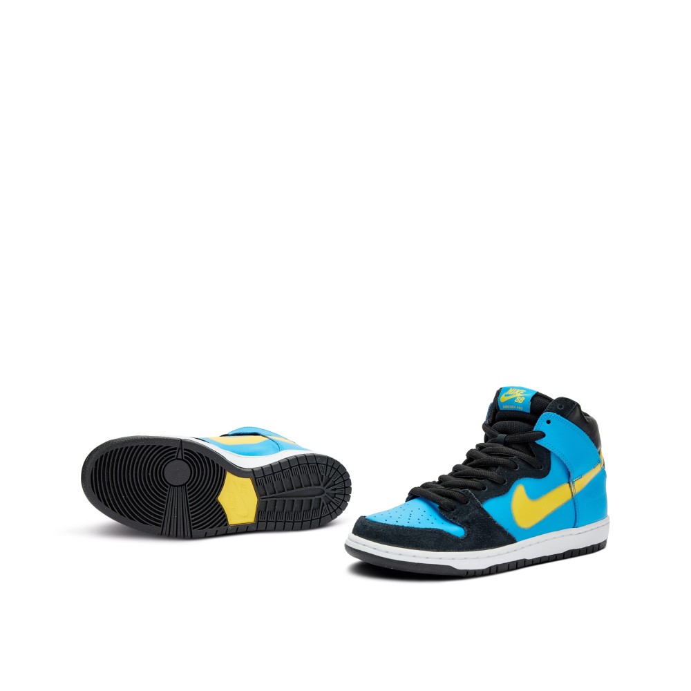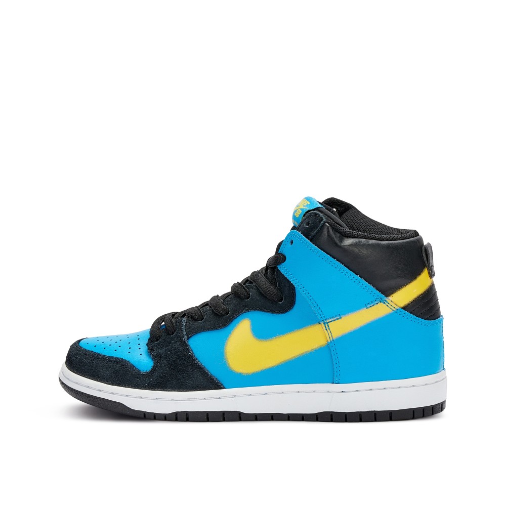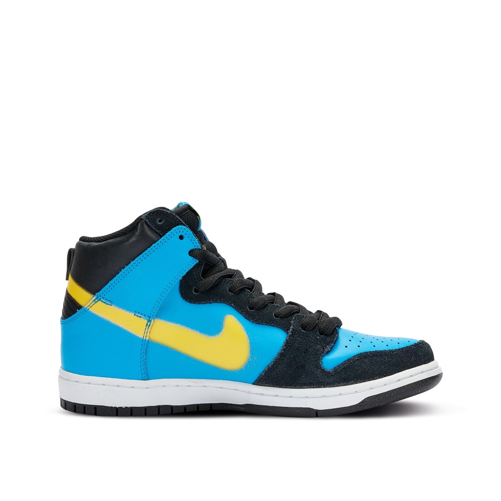 The Nike SB Dunk High Pro Blue Hero Sample sports a black and blue colorway on the upper and sits atop a white midsole and black outsole. This sample pair features a spray-painted effect on the yellow Swoosh. The Nike SB Dunk made its formal debut in 2002 when Nike officially reappropriated the famed Dunk basketball sneaker originally designed in the 1980s with upgrades suited for the skateboarding community. The man behind it, former Nike executive Sandy Bodecker, is credited with building one of Nike?s most beloved subdivisions in the early 2000s with the Nike SB line.