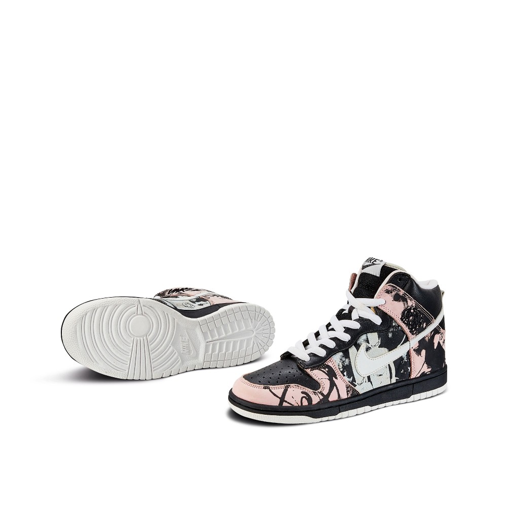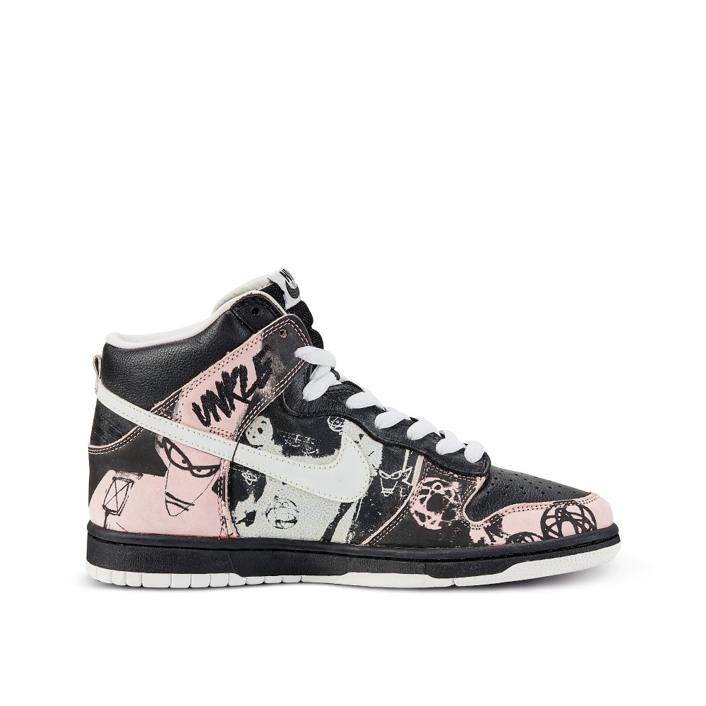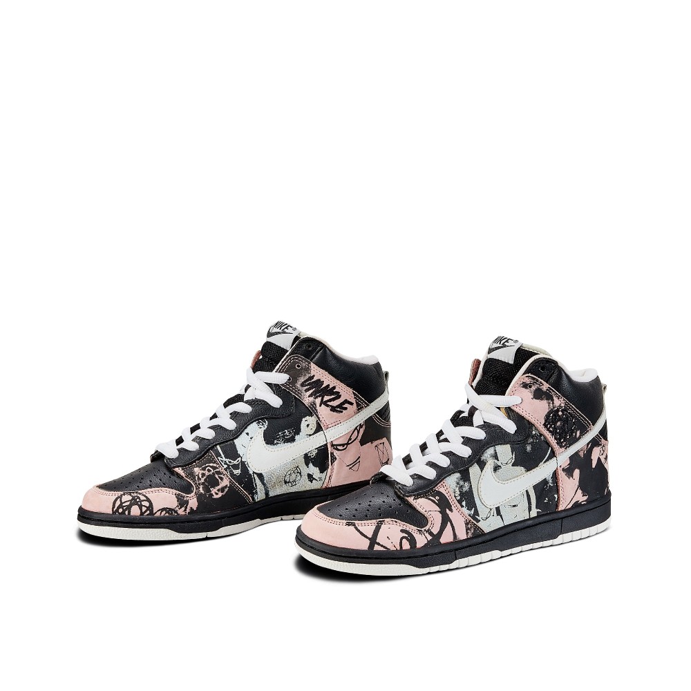 The Nike SB Dunk High Pro “D.U.N.K.L.E.” was released in 2004 in collaboration with the experimental hip-hop ensemble U.N.K.L.E. and New York City graffiti artist Futura. Outside of being a limited release with a rumor of fewer than 1,000 pairs produced, this was the first use of the now-iconic pink SB Dunk box.