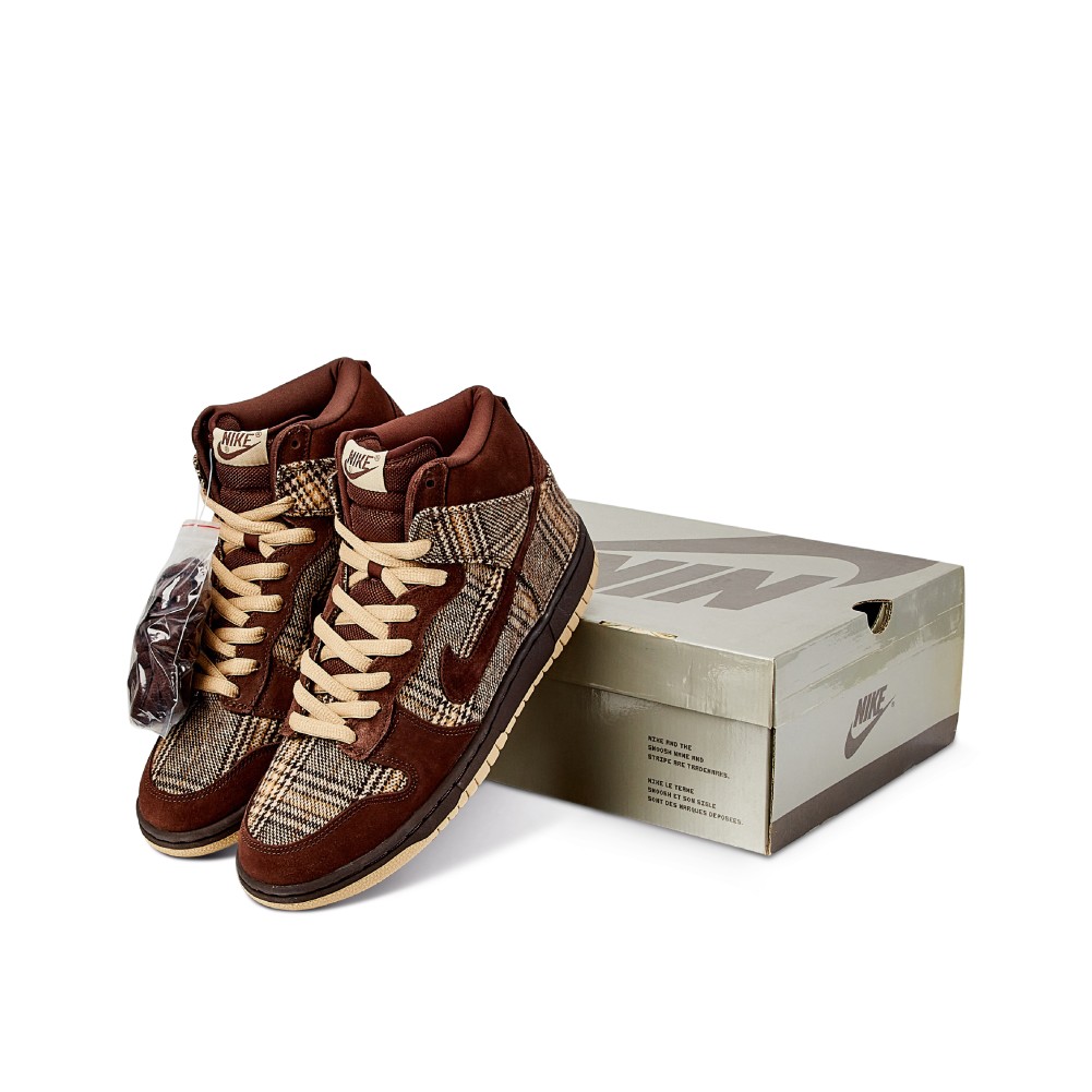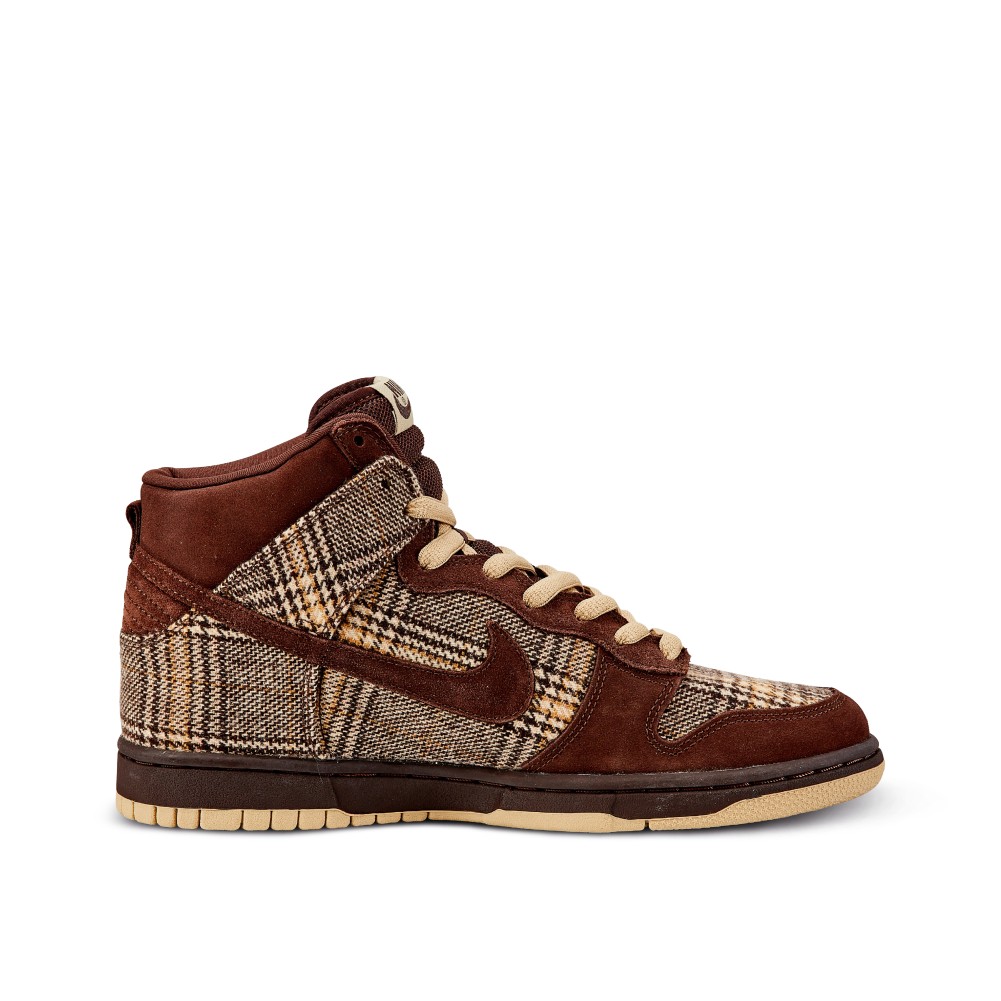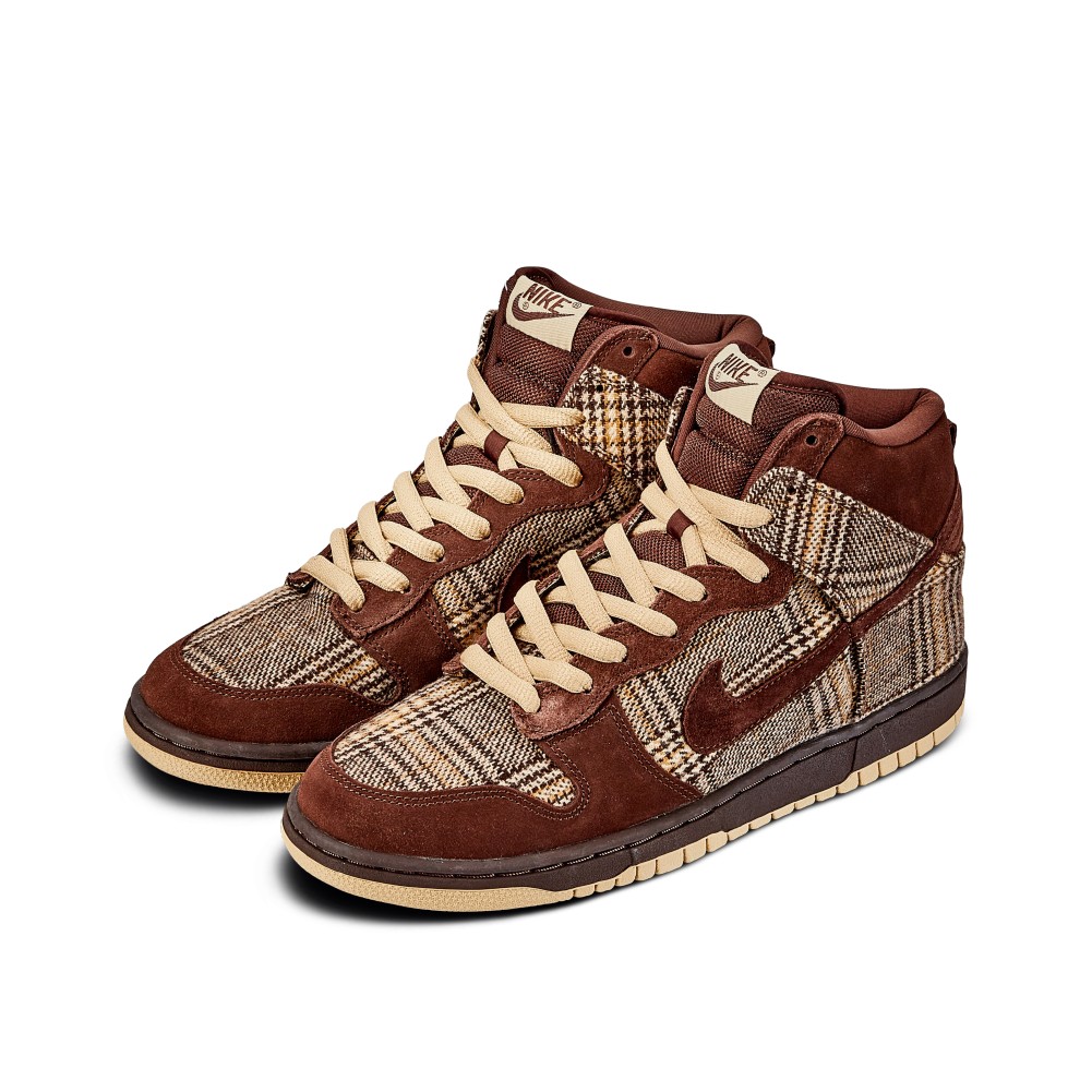 - Nike Dunk High Pro SB with baroque brown tweed and mushroom suede.