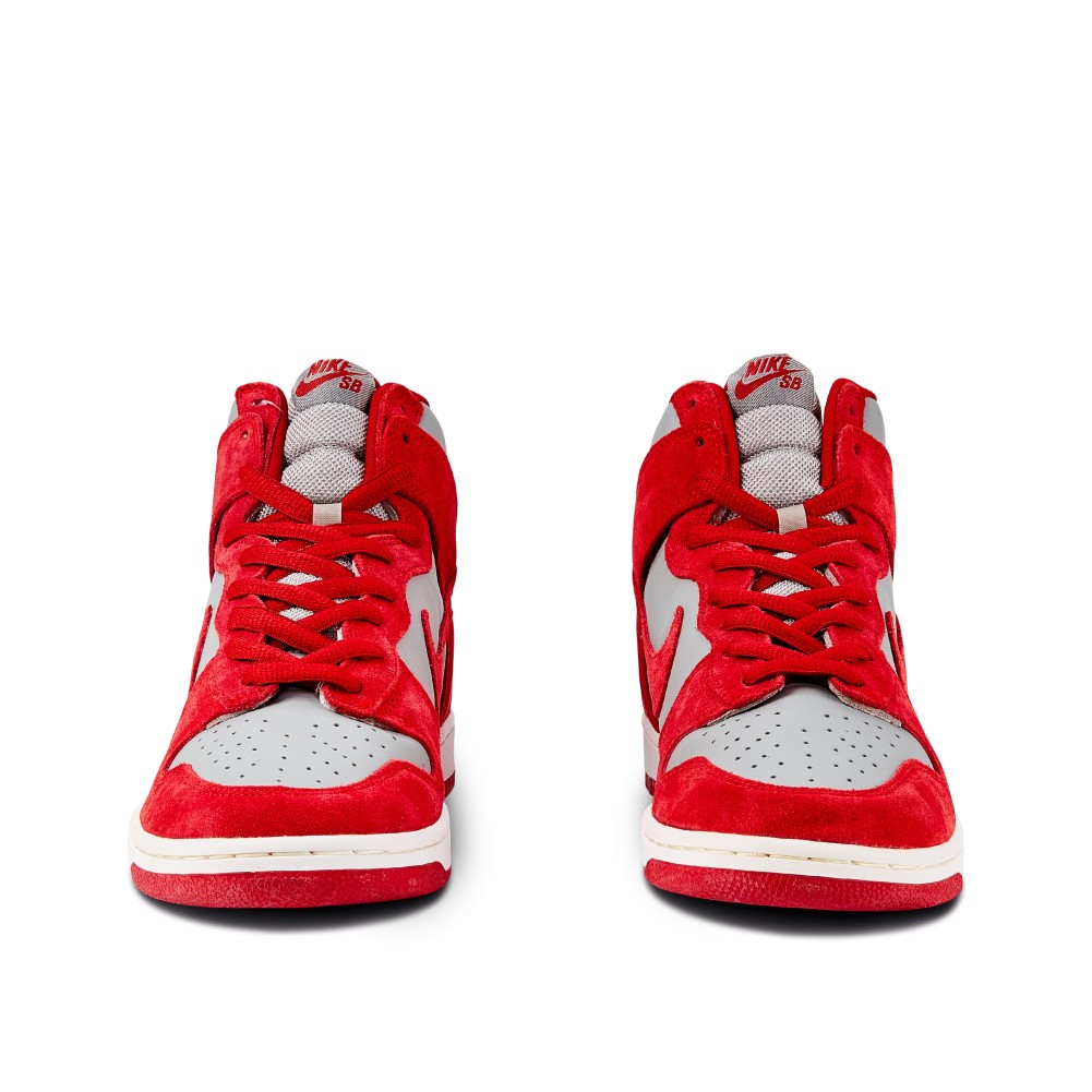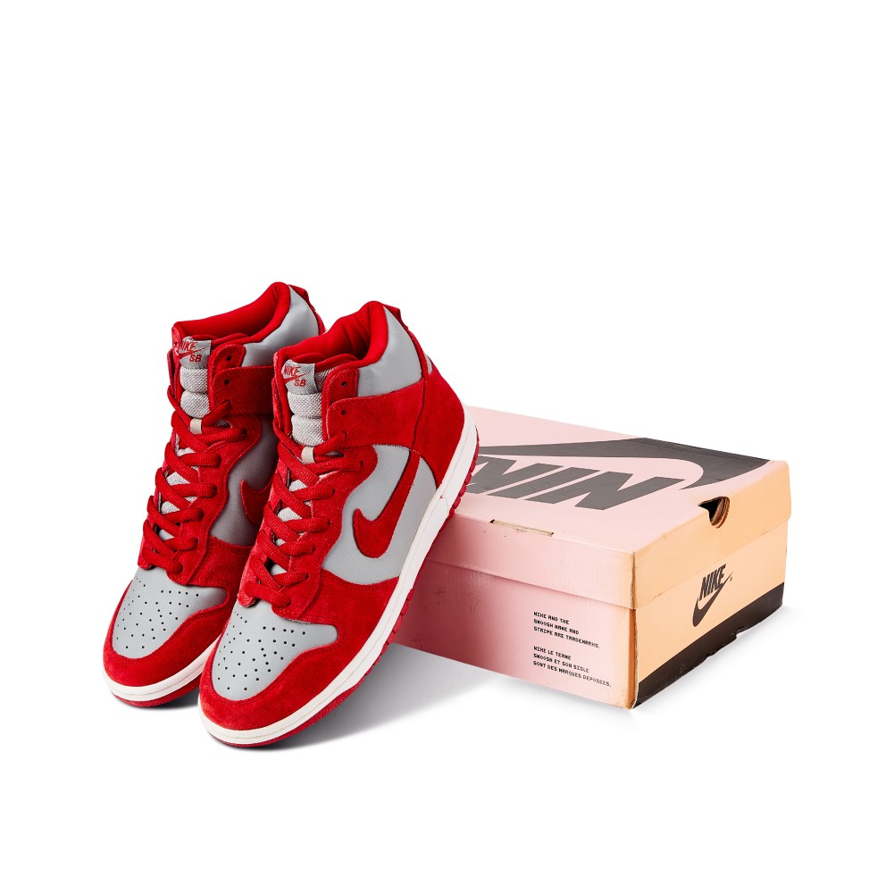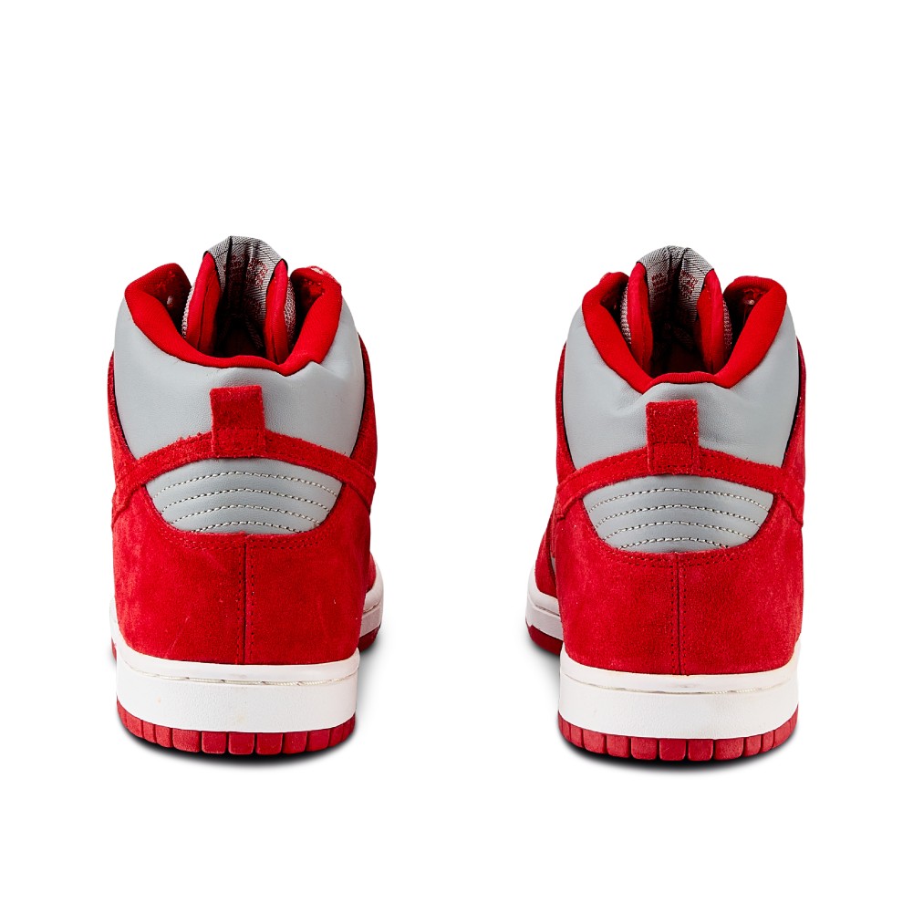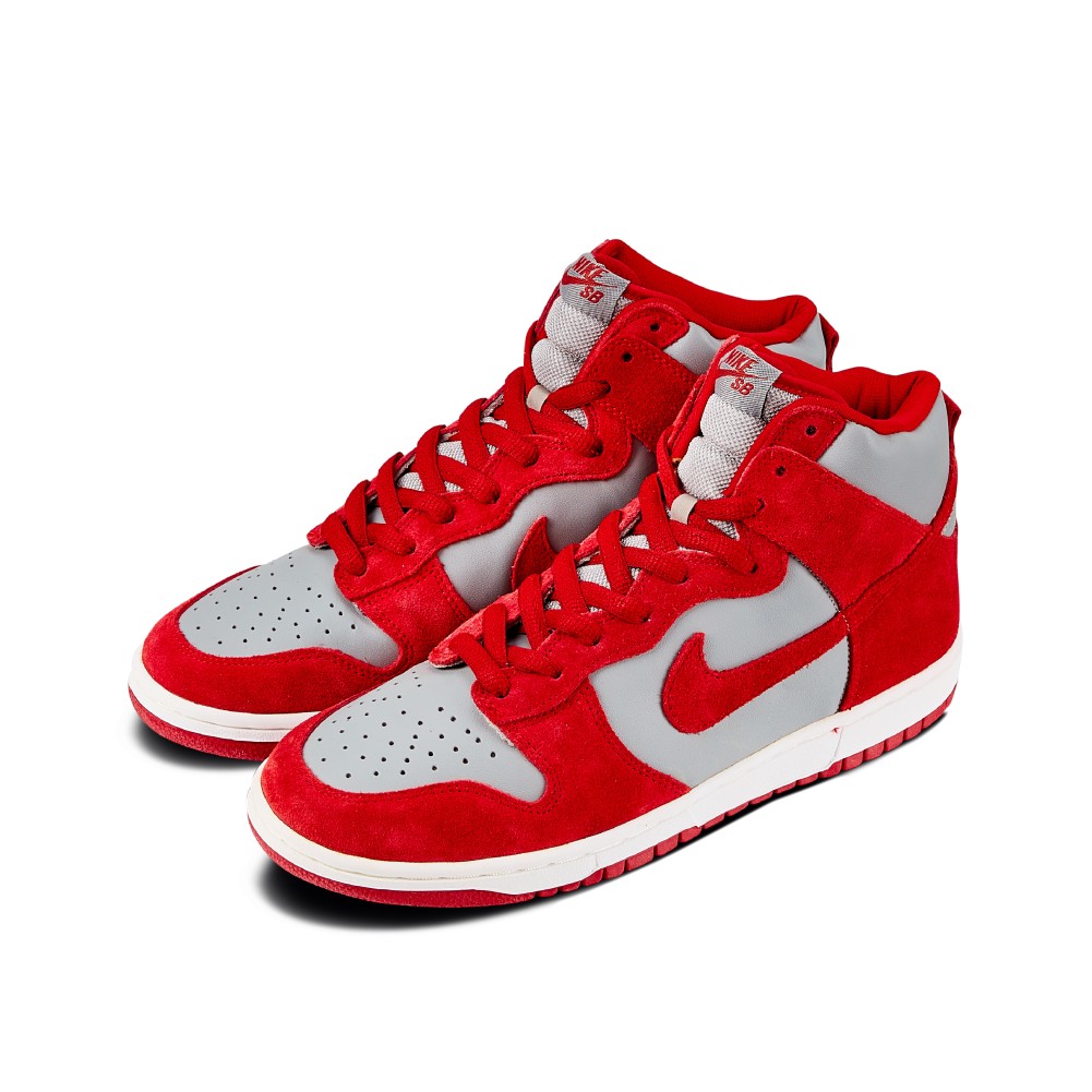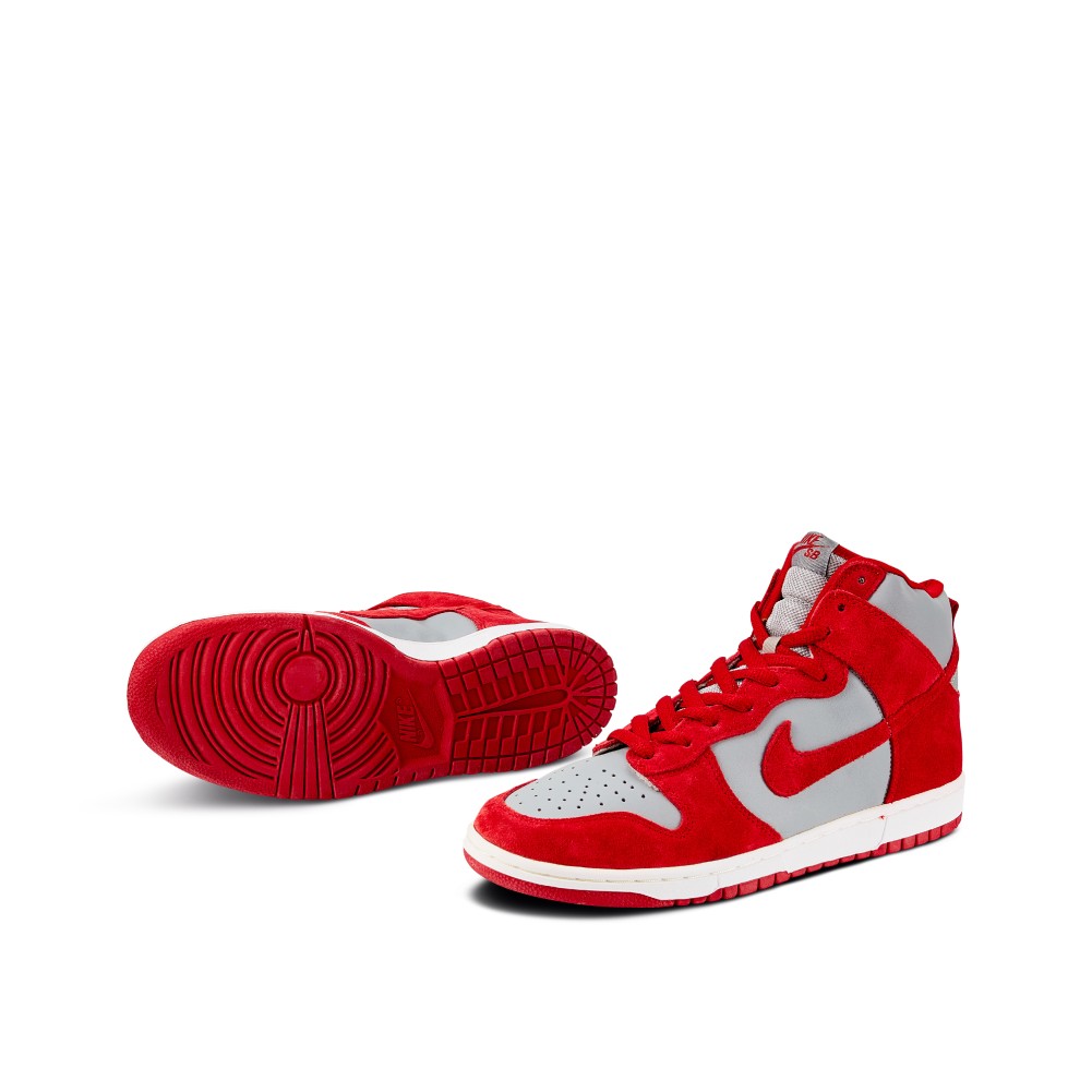 In 2005, Nike SB paid homage to the 20th anniversary of the Nike Dunk by releasing the seven original colorways from the Be True To Your School series. The SB rendition featured a suede upper, rather than the original leather, and each pair was accompanied with a special-edition hangtag. As part of the series, the Nike SB Dunk High Pro “UNLV” celebrates the Runnin? Rebels with its two-tone colorway of Varsity red and grey. The upper consists of a grey leather with red suede overlays and Swoosh. The pair sits atop a white midsole and red outsole.