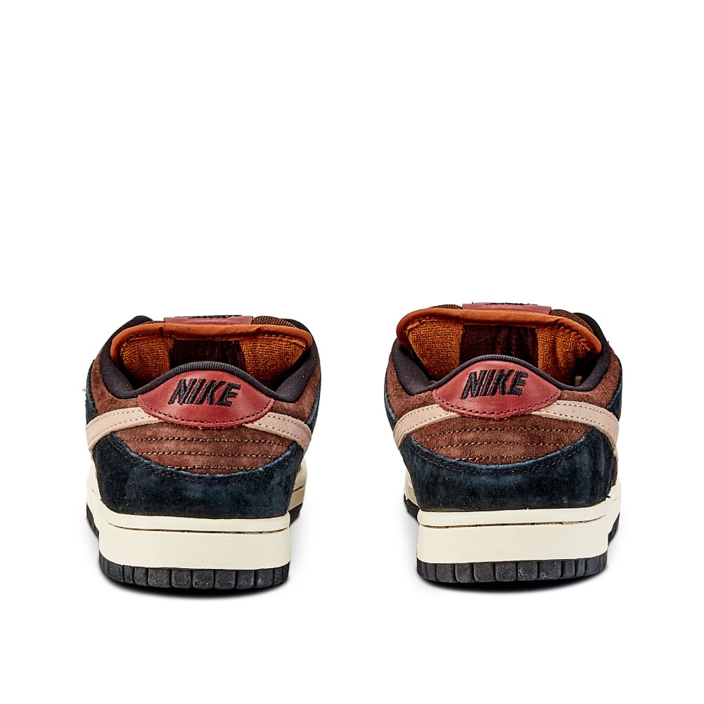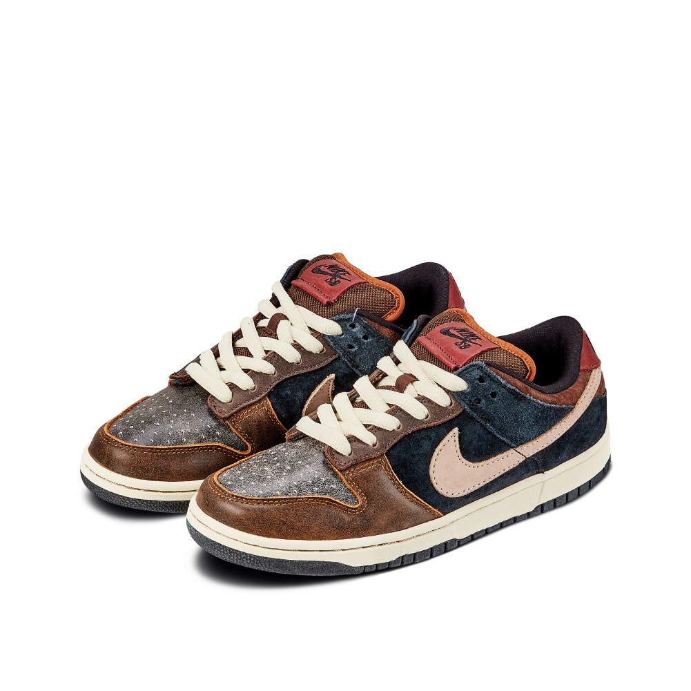 Nike designed the “Before” and the “After” to represent the Fender Telecaster from its first appearance with Strummer through to its final distressed finish. “Before” features a multicolored suede and leather upper with black, browns and creams and a white leather toe, inspired by the white acrylics on Fender guitars. “After” is representative of the heavily used instrument, using dark suede and distressed leather to give the Dunk a worn look and tell the story of a rock star and his beloved guitar.
