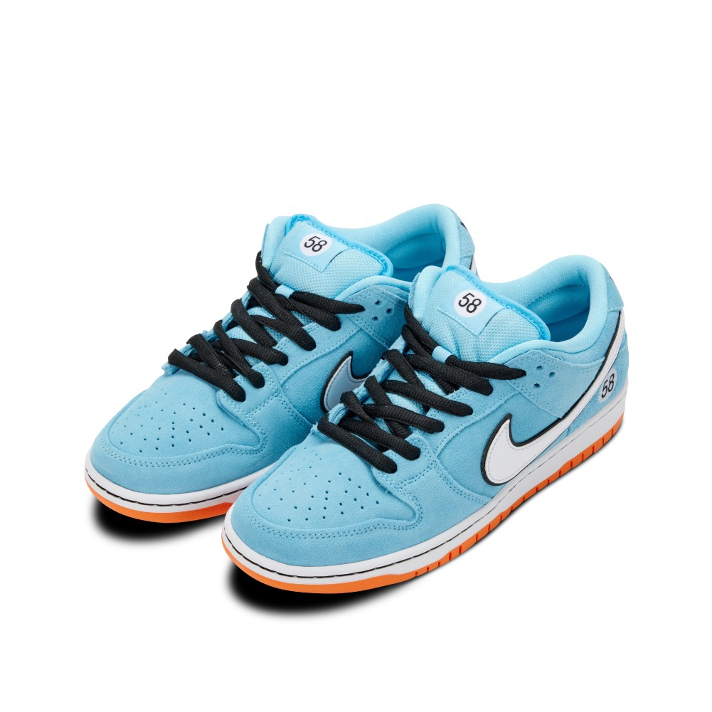 The Nike SB Dunk Low ‘Gulf’ is an SB update to the original Blazer ‘Club 58’ silhouette from 2018; an homage to the skate collective Club 58, formed by SB Nike employees and skate shop owners.