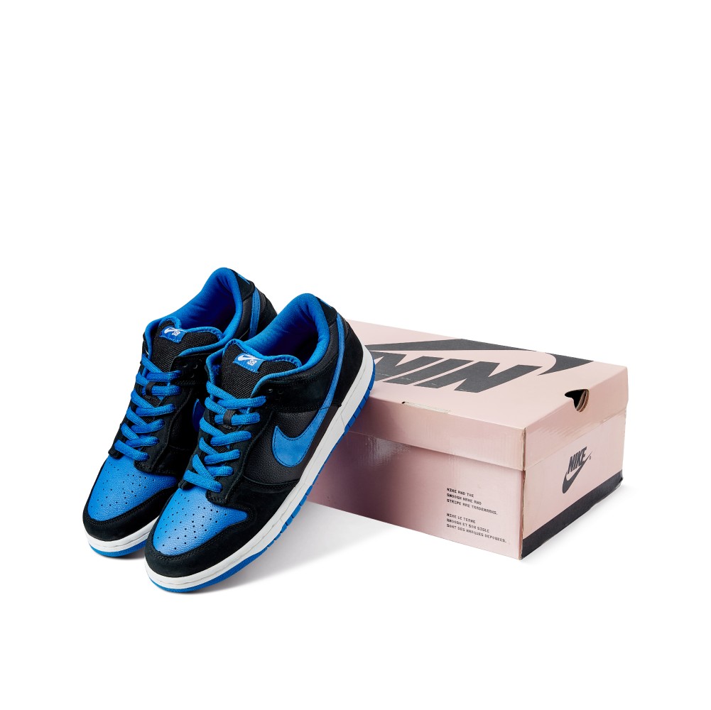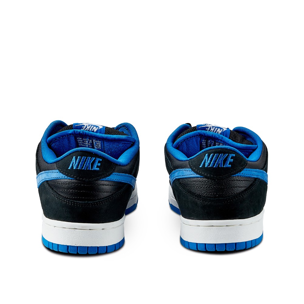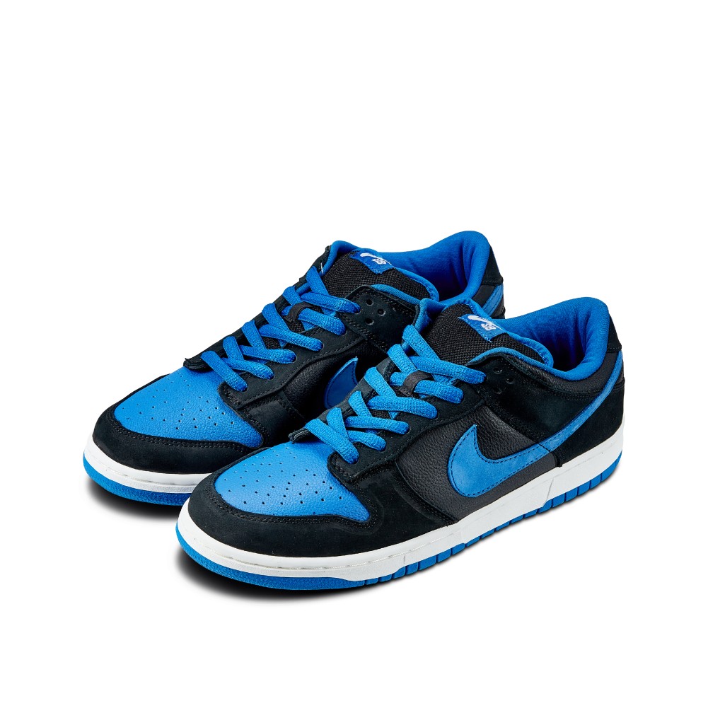 The Nike SB Dunk Low Pro J Pack Royal was released in 2005, during Nike SB?s Pink Box era. The moniker comes from the pair?s resemblance to the Air Jordan 1 OG “Royal” colorway. The upper consists of black leather and nubuck, and Royal Blue accents on the Swoosh, laces, toebox and inner lining. The pair sits atop a white contrasting midsole and Royal Blue outsole.