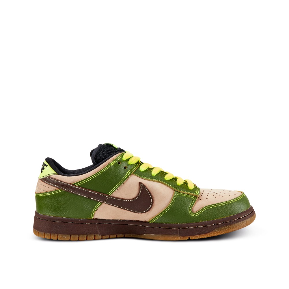 Released in 2004, the Nike SB Dunk Low ?Jedi? imitates the ragged attire, as well as the green skin, of Star Wars character ?Yoda.? Yoda was a Jedi Master who trained Luke Skywalker in the 1980 smash hit The Empire Strikes Back. Additionally, the laces, tongue and heel are all in a neon green, nodding to the iconic use of light sabers in the film.