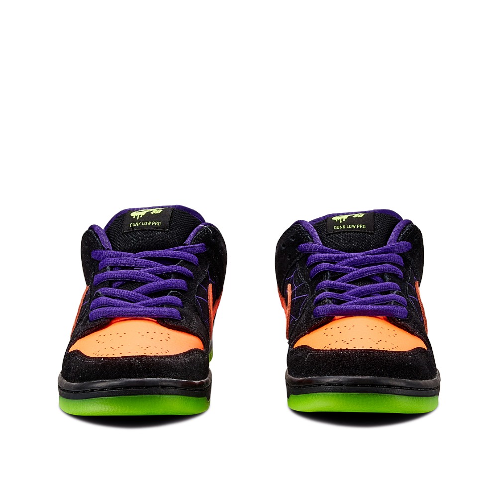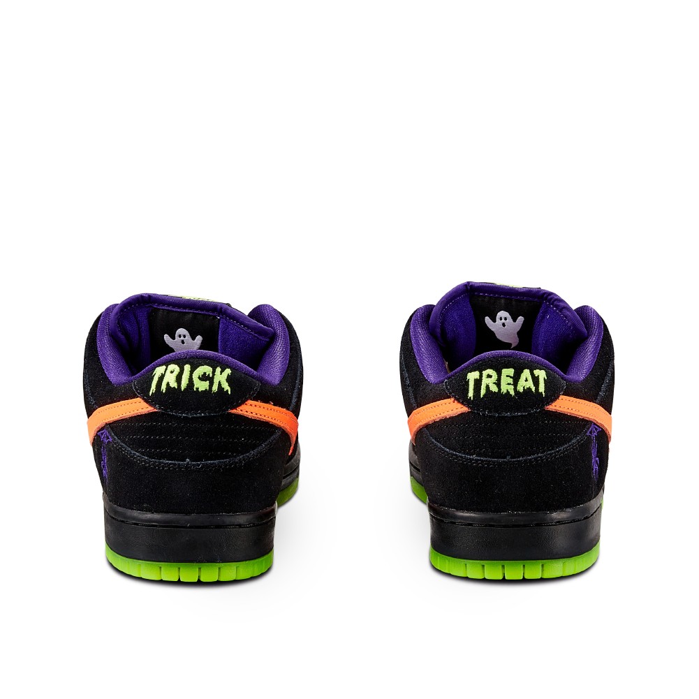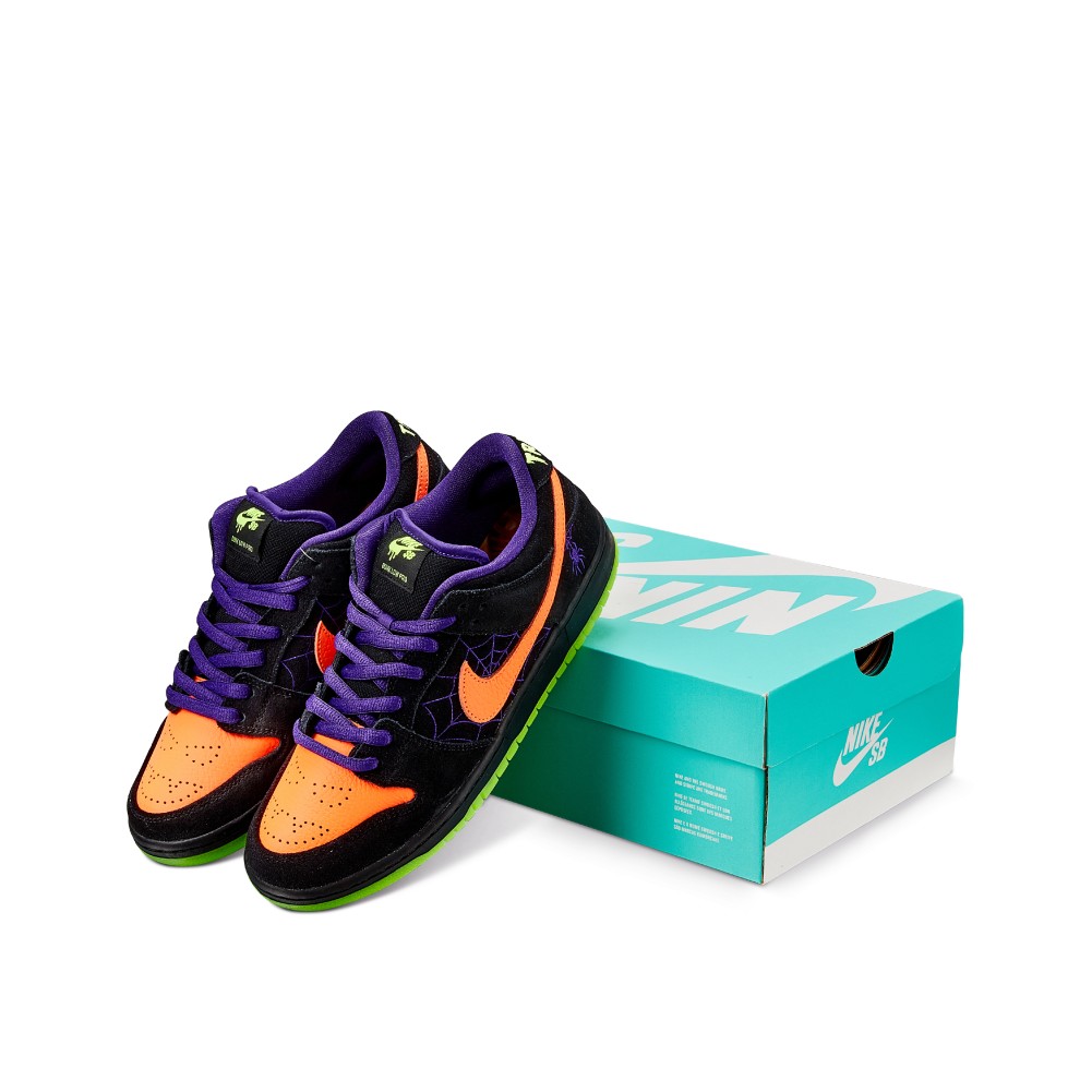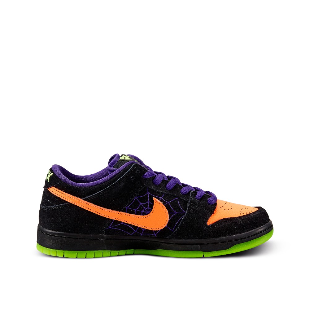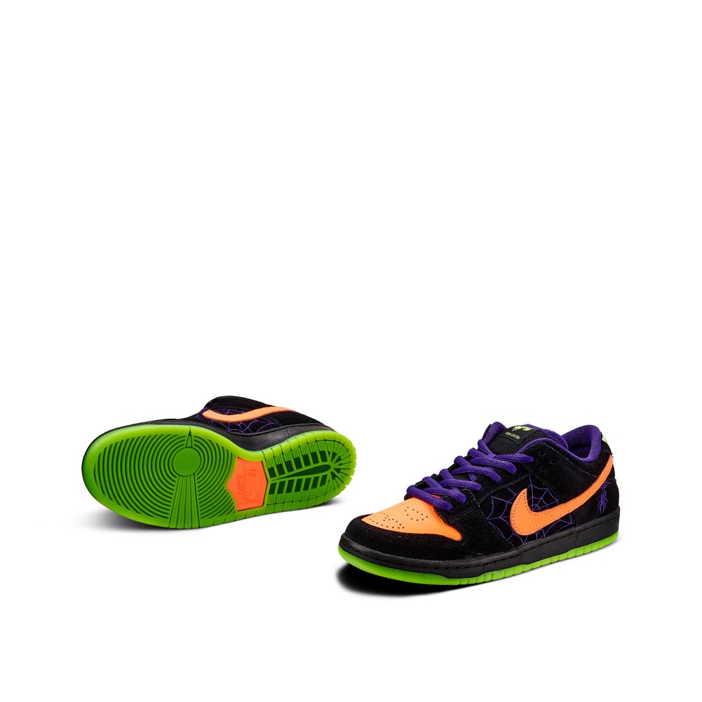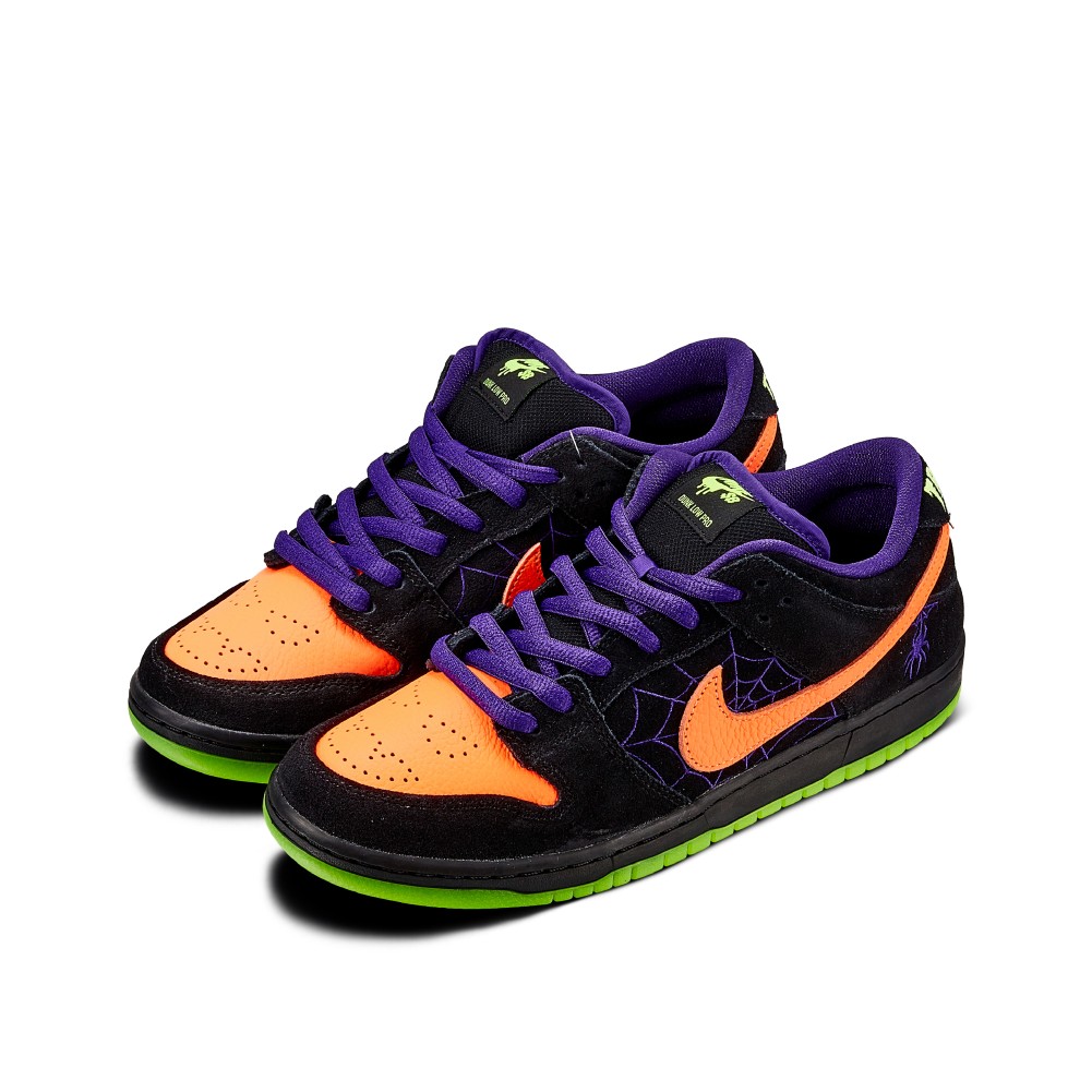 Embroidered on the back heel is a purple spider with web detailing on either side and purple shoelaces and insole to match. To complete the theme, the heel tabs read ?Trick? on the left and ?Treat? on the right in neon green. The Nike Dunk, designed in the 1980s and intended for basketball, was eventually repurposed for skateboarding. The popular model would be reworked in the early 2000s with upgrades for the skateboarding community, leading to the formal debut of the Nike SB brand. The man behind it, former Nike executive Sandy Bodecker, is credited with building one of Nike?s most beloved subdivisions with the Nike SB line.