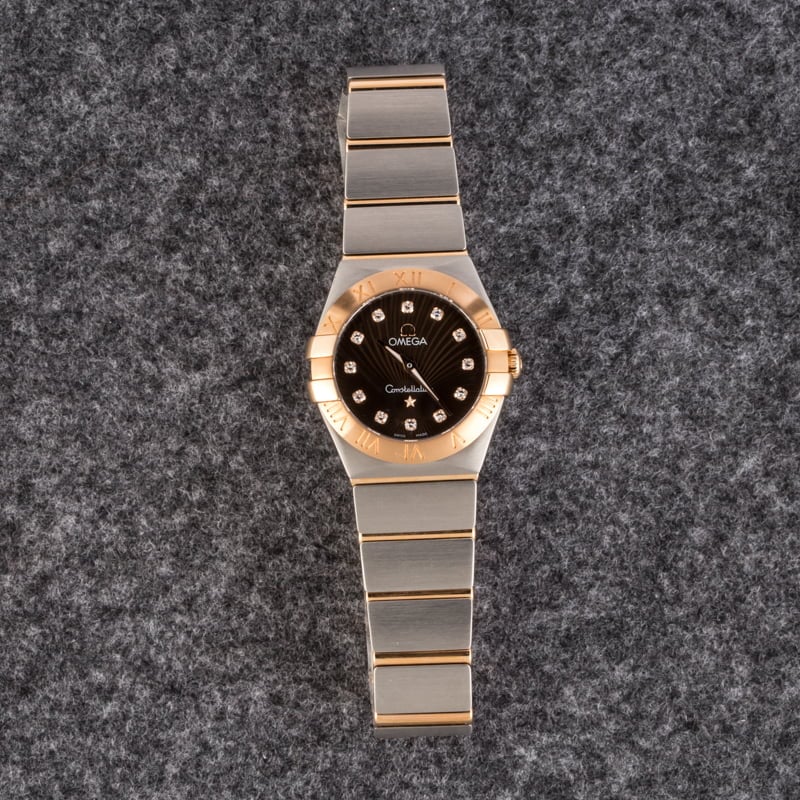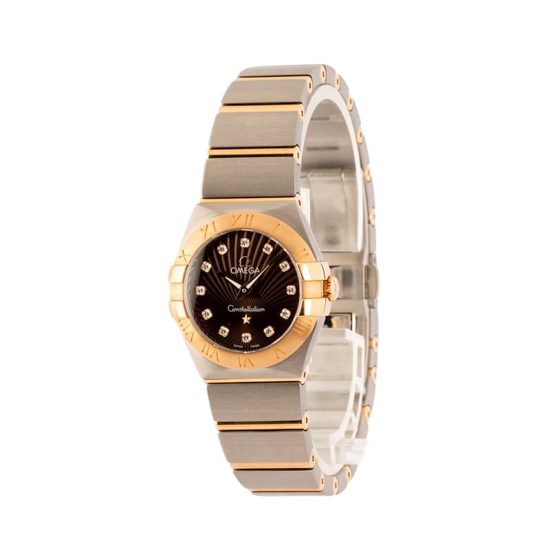 This edition of the famous Omega Constellation pairs the steel and red gold finish with a matching brown dial. The warm tones of the dial and red gold lend themselves to a timeless design that will transcend fashion. The Constellation is always distinguished by a unique “Griffe” bezel with decorative claws. Additionally, the case is often paired with a sleek integrated bracelet. The Constellation is instantly recognizable and is one of the brand’s most successful and iconic watch models. Ref. 123.20.24.60.63.001 also features a dazzling Supernova dial decorated with diamonds and a flattering size and weight.
