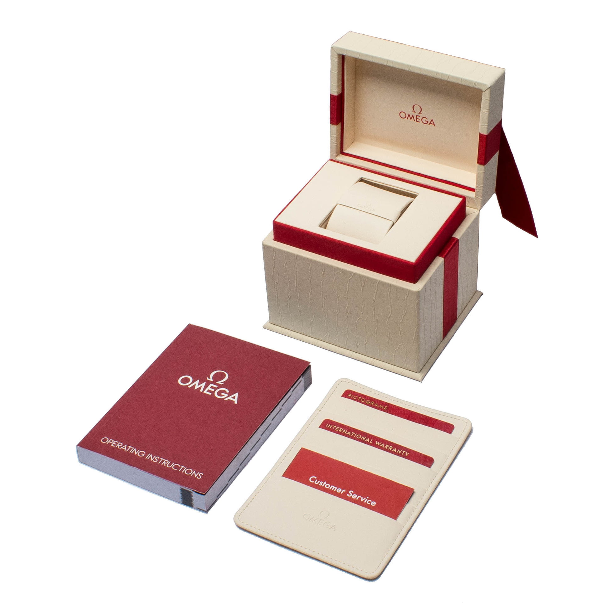 This edition of the lady’s Omega Constellation features a remarkable white Mother-of-Pearl dial decorated with waves and shimmering brilliant-cut diamond hour markers. It’s an absolutely stunning edition of the iconic dress watch that caters to fashion-forward women of all budgets and lifestyles. The Constellation has been in production for decades now. It’s distinguished by a sleek integrated bracelet that drapes effortlessly around the wrist and “Griffes” or claws that were once functional elements designed to hold the crystal onto the case. Today, they’re purely decorative and are a big part of what makes the Constellation so recognizable and highly revered.