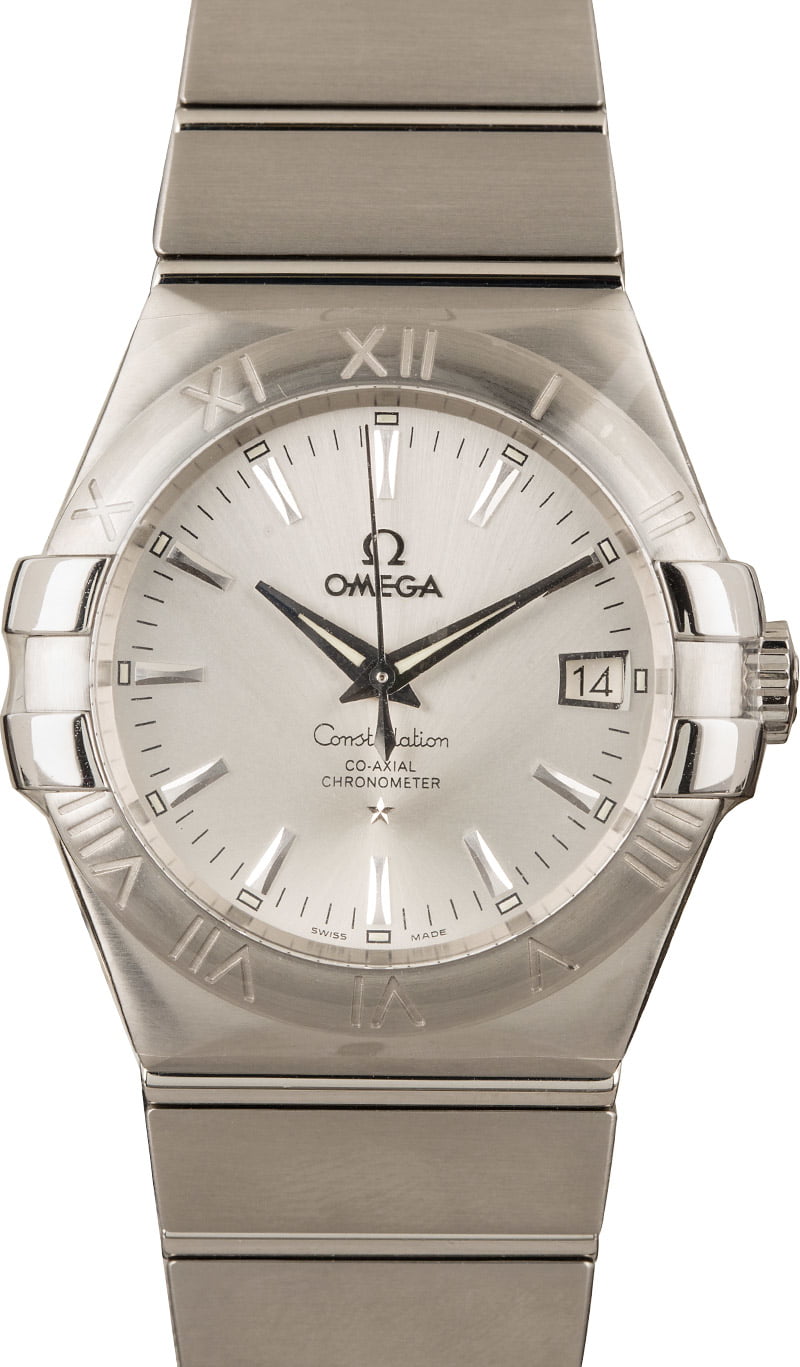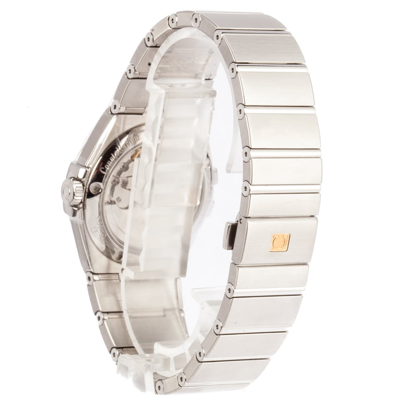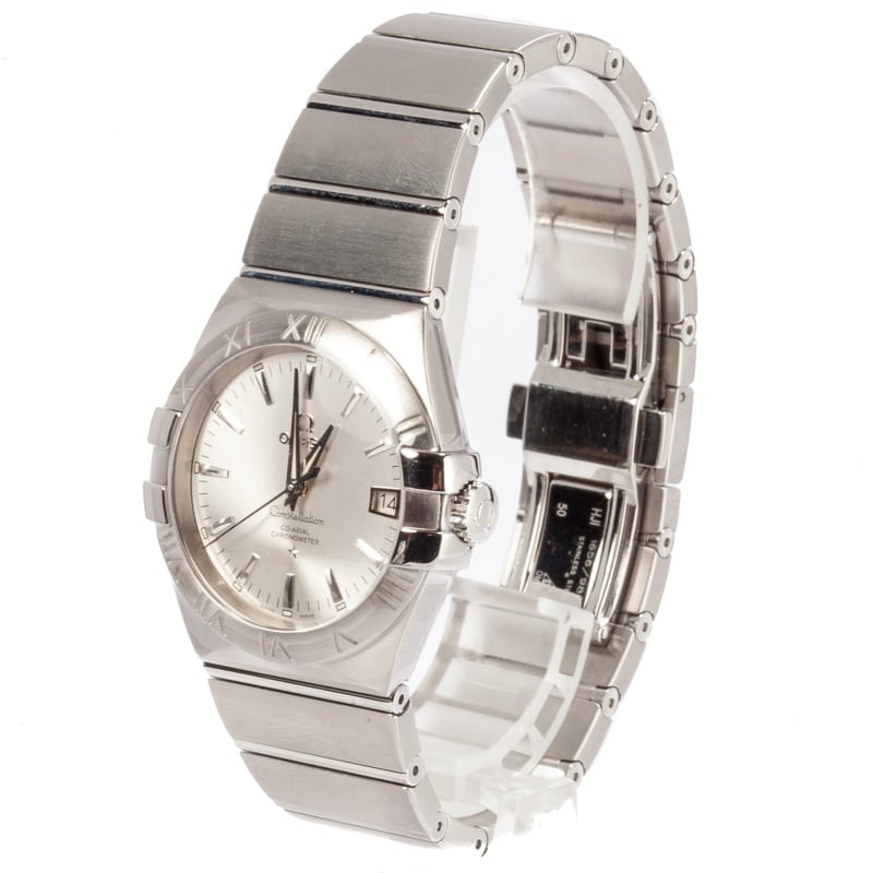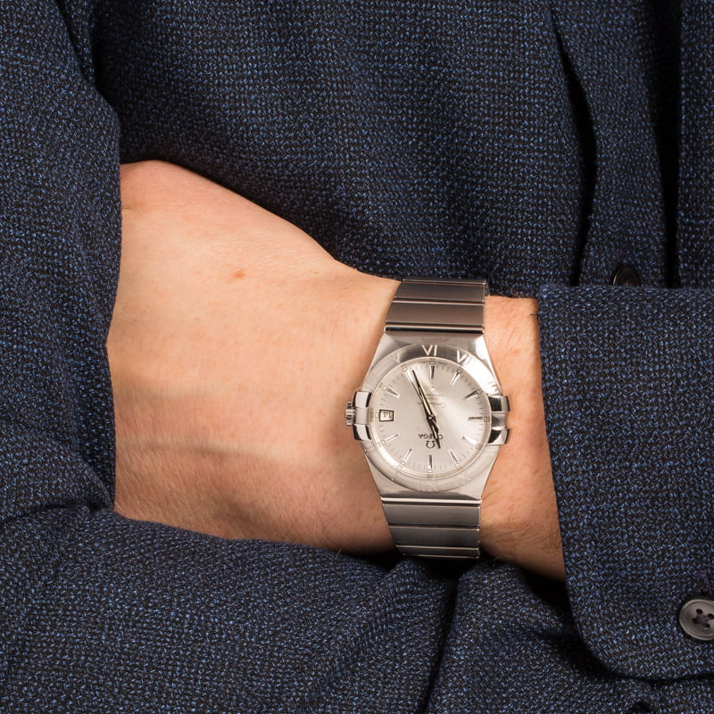 Are you in the market for a mid-size Omega? Consider the iconic Constellation reference 123.10.35.20.02.001 in stainless steel. This edition of the famed dress watch includes an all-steel finish, a matching silver dial adorned with faceted hour markers and tapered hands, and the cal. 2500 self-winding movement. The case is equipped with a scratch-resistant sapphire crystal on both sides. It also features a waterproof crown and a sturdy integrated bracelet for reliable, all-day wear. The Constellation also transitions effortlessly from day to night, making it a smart investment that you can wear with confidence virtually anywhere you roam.