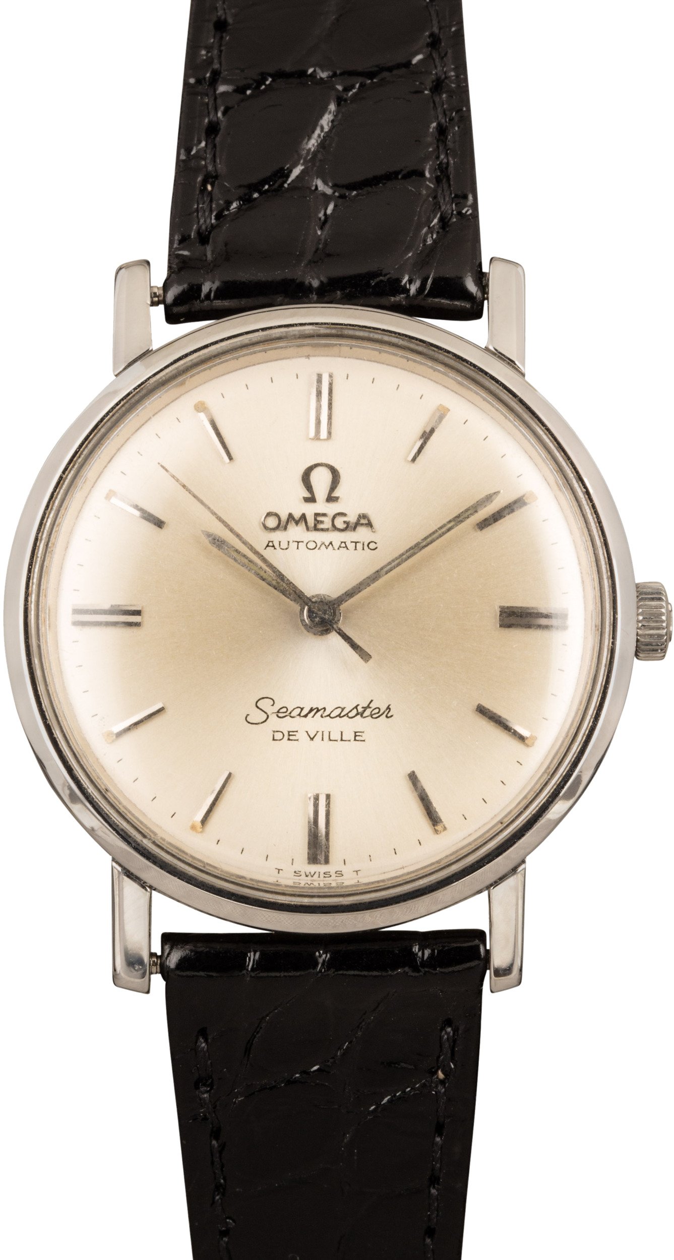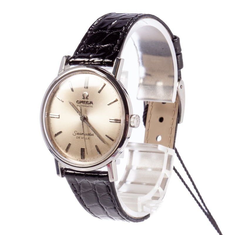 Are you in the market for an affordable vintage Omega watch with immense character and history? Look no further than the Omega De Ville for sale here. This vintage watch features a 32mm case in stainless steel, an older-style acrylic crystal, and a charming silver dial decorated with older-style indices and hands. The Seamaster logo is displayed below the central hands in an elegant font, with the De Ville logo placed just below it. This watch exudes sophistication and class. We’re confident that you will be proud to wear it on your wrist.