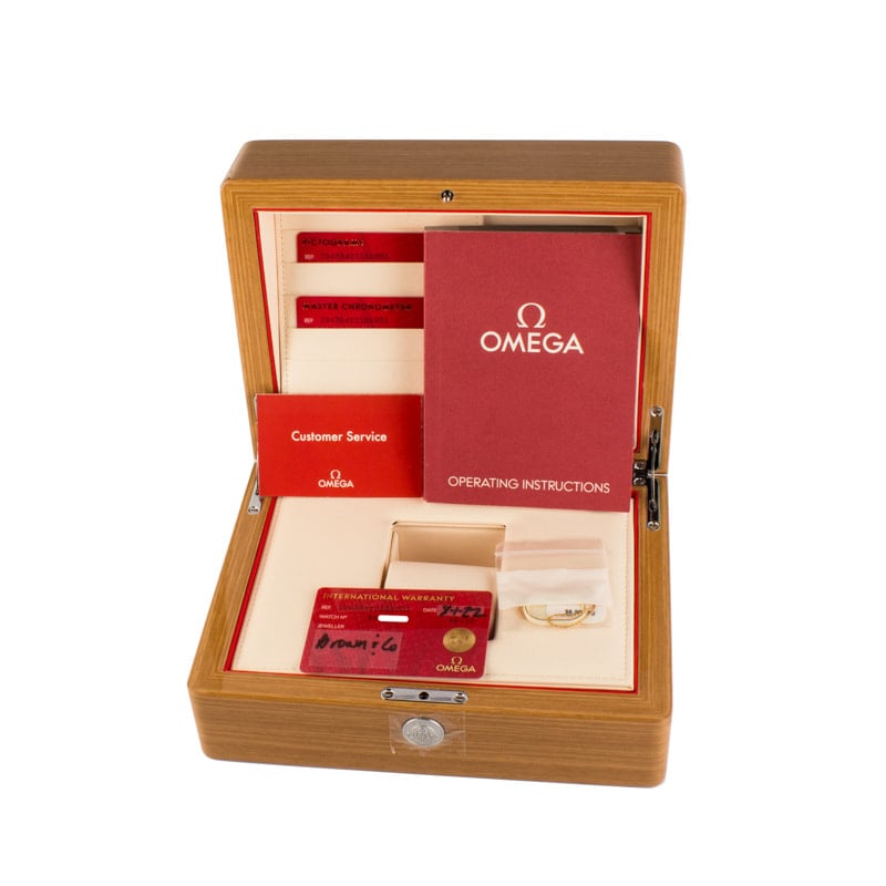 Pre-owned Omega Seamaster ref 234.30.41.21.01.001 (2022). Omega released three of their biggest models in 1957 – including the Seamaster 300. The Omega for sale here pays tribute to that famous trio with a similar vintage-inspired Seamaster 300 design set. That includes matching graduations on the bezel, older-style broad arrow hands, retro dagger hour markers, and luminescent material in a creamy faux patina hue. It also features an ergonomic stainless steel multi-link bracelet, scratch-resistant sapphire, water resistance up to 300 meters/1,000 feet, and Omega’s Master Chronometer caliber 8912 self-winding movement with a 60-hour power reserve.