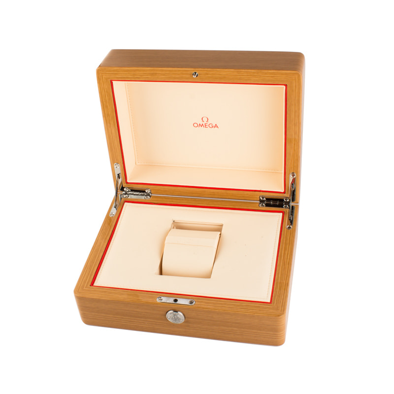 Pre-owned Omega ref Seamaster Diver 300M ref 210.30.44.51.06.001 is a contemporary expression of the beloved diver, featuring a sleek blue and grey design set, bi-compax dial, and stainless steel finish. The remarkable ceramic dial features a dynamic sun-brushed PVD chrome color and signature laser-engraved waves. Blue Chronograph registers, skeleton hands, hour markers, and minute track tie the dial to the polished blue ceramic bezel for a cohesive design no collector could resist. It’s all about the details on this watch, which also features a white enamel diving scale calibrated to 60 minutes, polished blue ceramic chronograph pushers to match the bezel, Super-LumiNova, and an exhibition case back with a lovely view of the beautifully finished Co-Axial caliber 9900.