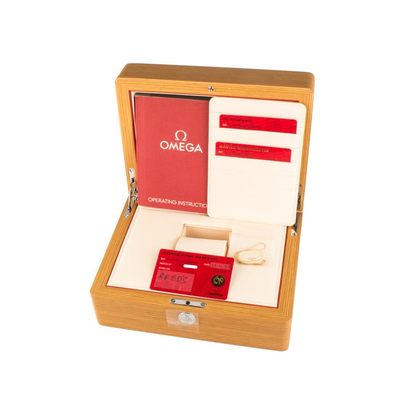 Pre-owned Omega Seamaster Planet Ocean ref 215.30.44.21.01.001 (2023) hails from the collection that was originally developed in 2005 and that remains a fixture of the Omega catalog. It is widely sought-after by collectors of all professions, lifestyles, and budgets for its fashion-forward and functional design ethos. The example you see here pairs the stainless steel finish with a black dial and bezel, a very popular dive watch design set. The case sports a scratch-resistant sapphire crystal, a black ceramic dial topped with Super-LumiNova, a matching black ceramic uni-directional time-lapse bezel, and a Helium Escape Valve. It can withstand up to 600 meters/2,000 feet below the ocean’s surface. Even more impressive is the movement, Omega’s caliber 8900 self-winding movement, which boasts the distinction of a Master Chronometer, a Co-Axial escapement, and a 60-hour power reserve.