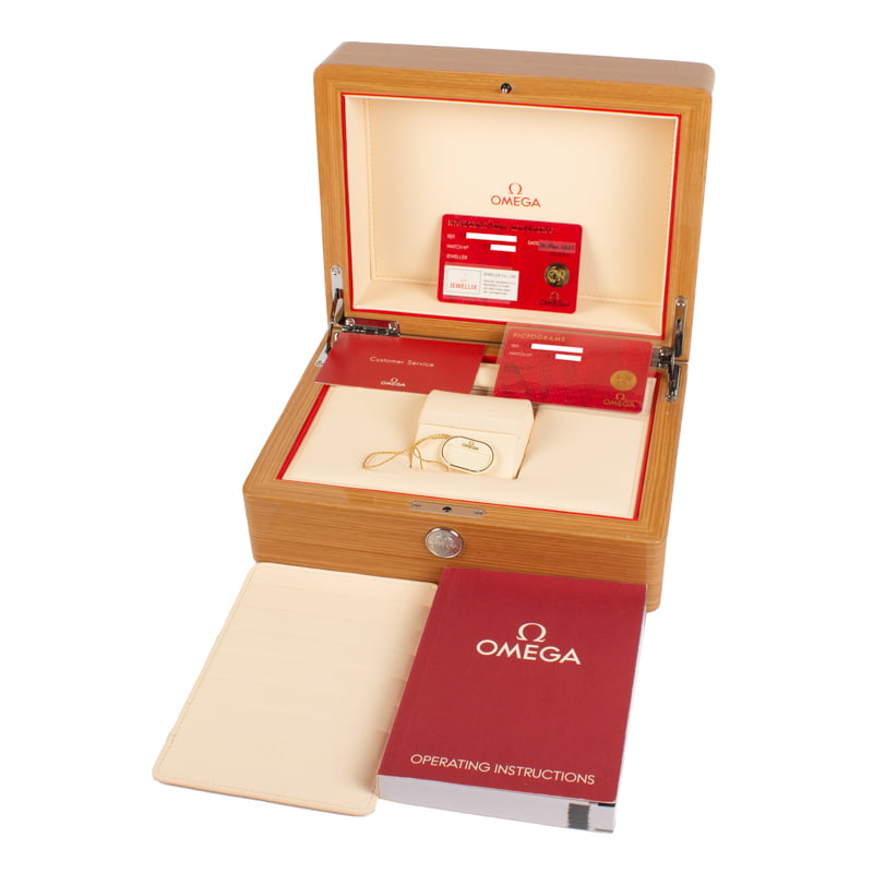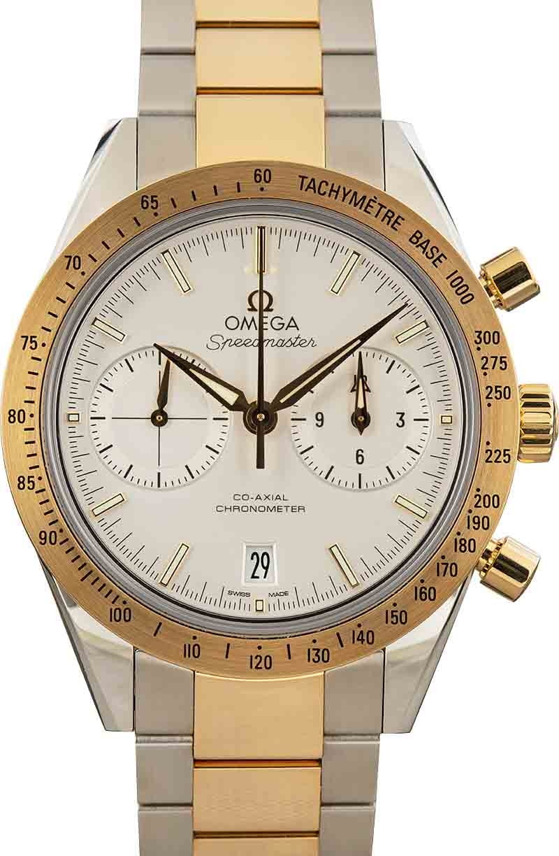 The 2023 Omega Speedmaster ’57 ref. 331.20.42.51.02.001 pays homage to the brand’s past with a striking balance between old and new design elements. Features include a silvery dial decorated with retro markers and hands, straight lugs, and a handsome steel and yellow-gold two-tone finish. The case is outfitted with a scratch-resistant and anti-reflective sapphire crystal and promises water resistance up to 100 meters/330 feet. Within the 41.5mm case beats the caliber 9300 chronometer-rated movement with automatic winding technology, a Co-Axial escapement, and a 60-hour power reserve. Buy this inspiring Omega today in excellent pre-owned condition.