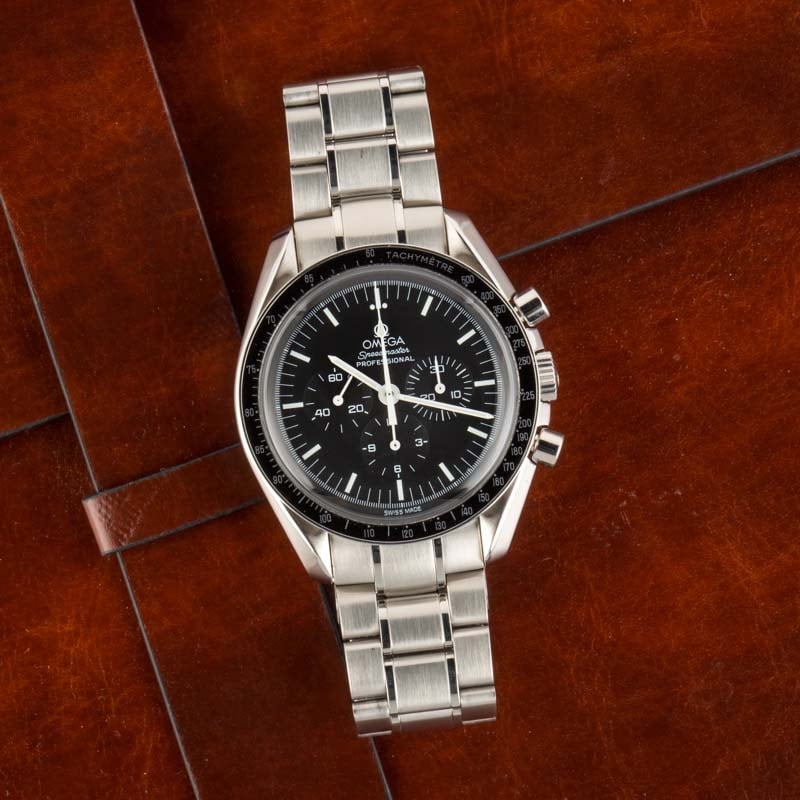 Pre-owned Omega Speedmaster ref 3560.50.00 30th anniversary Apollo XI pays homage to one of humankind’s most significant accomplishments, successfully landing a man on the Moon. It is also a monumental milestone for Omega and the Speedy, which was present during the Apollo 11 mission and the first wristwatch worn on the Moon. To honor the original Moon Watch, ref. 3560.50.00 features a special case back engraved with the famous Moon landing quote, “Hello Houston, Tranquillity Base Here. The Eagle Has Landed,” and the mission date, “July 21, 1969, 02:56 GMT.” It sports a similar Moon Watch design set, including a matte dial with “stick” hands, twisted Lyre lugs, a slim black tachymeter bezel, and a hand-wound caliber 1861 mechanical movement.