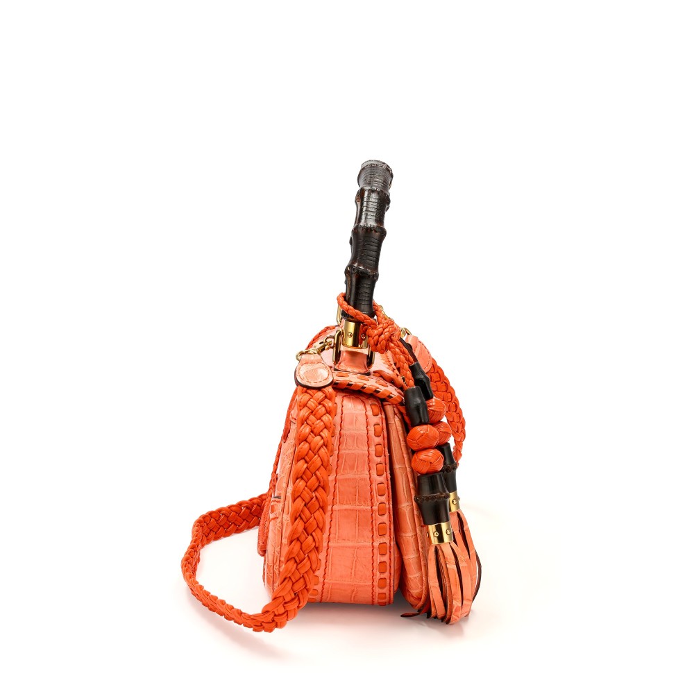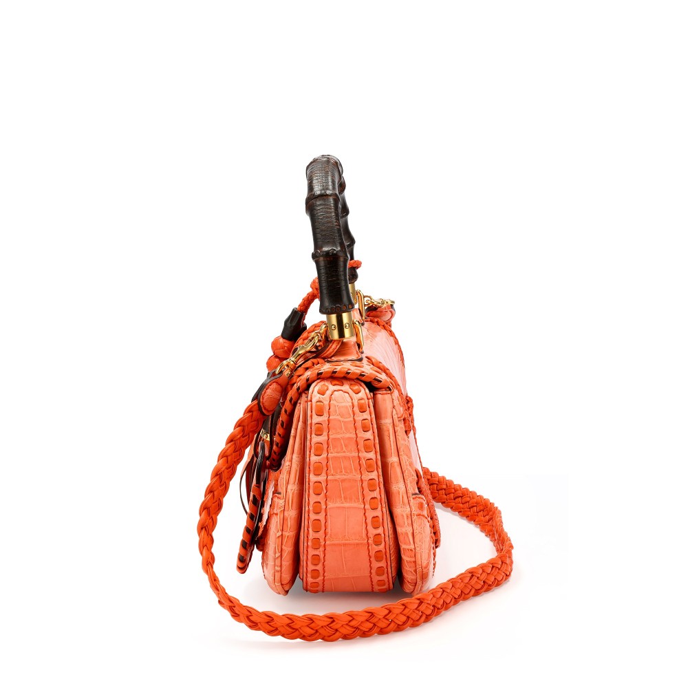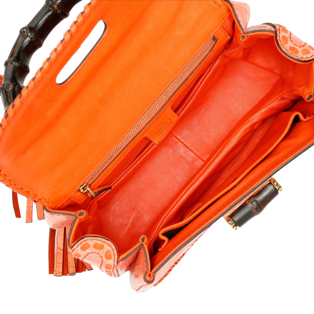 Gucci Orange Crocodile Whipstitch Medium New Bamboo 1921 Top Handle Bag Gold Hardware, 2011