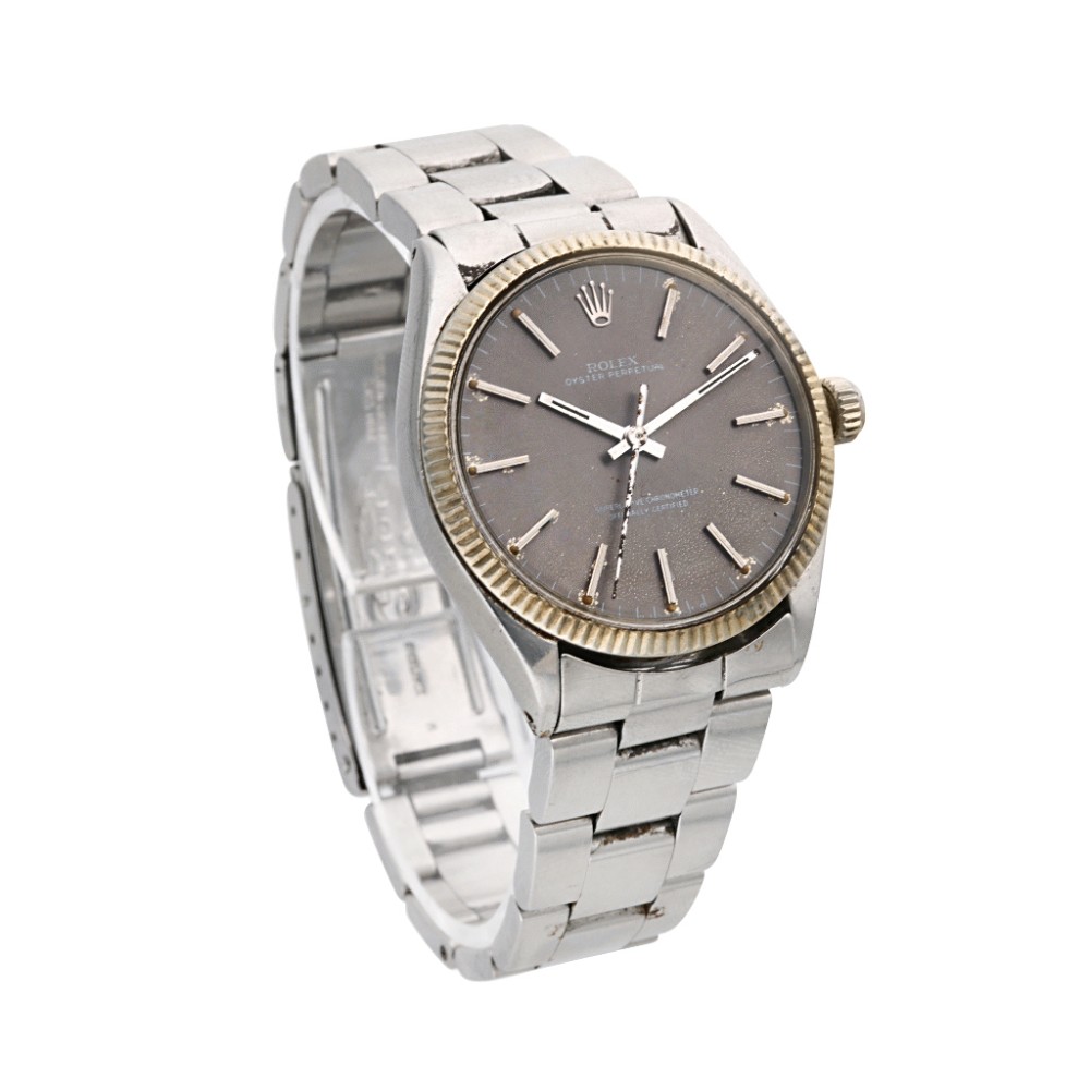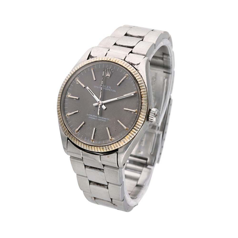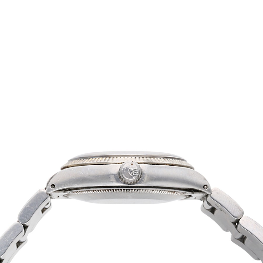 The Oyster Perpetual ref. 1005 measures 34mm in diameter. The measurement is still in use to this day, making the perfect size for both men and women, with a wide variety ranging from stainless steel to two-toned and 14k or 18k gold timepieces.