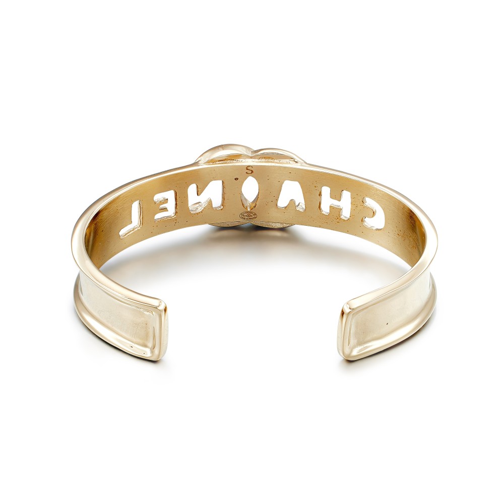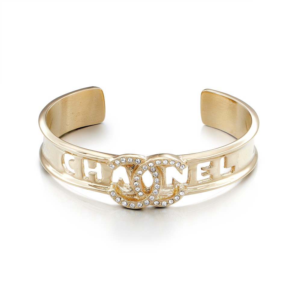Chanel Pale Gold Metal and Crystal CC Bangle
