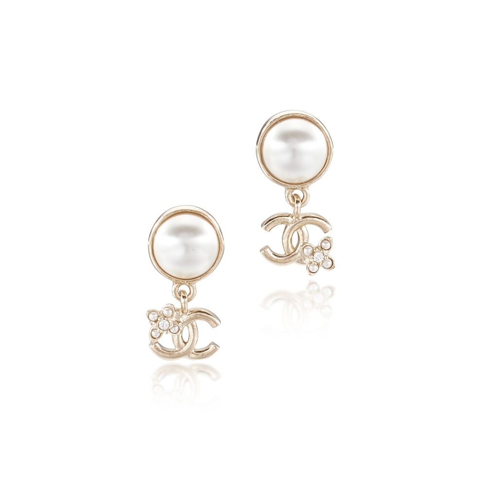 Chanel Pale Gold Metal and Imitation Pearl CC Earrings