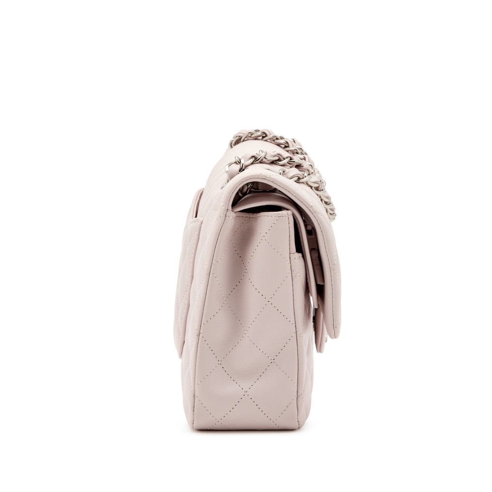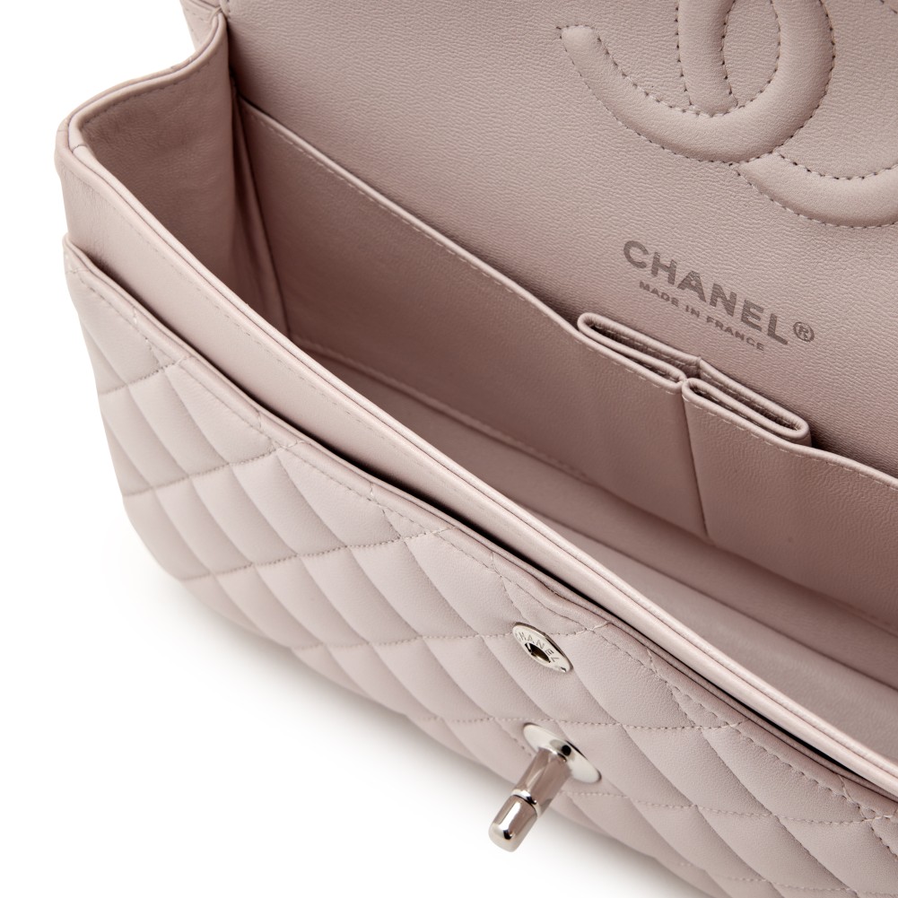 Chanel Pale Pink Quilted Lambskin Medium Double Flap Bag Silver Hardware, 2022-2023