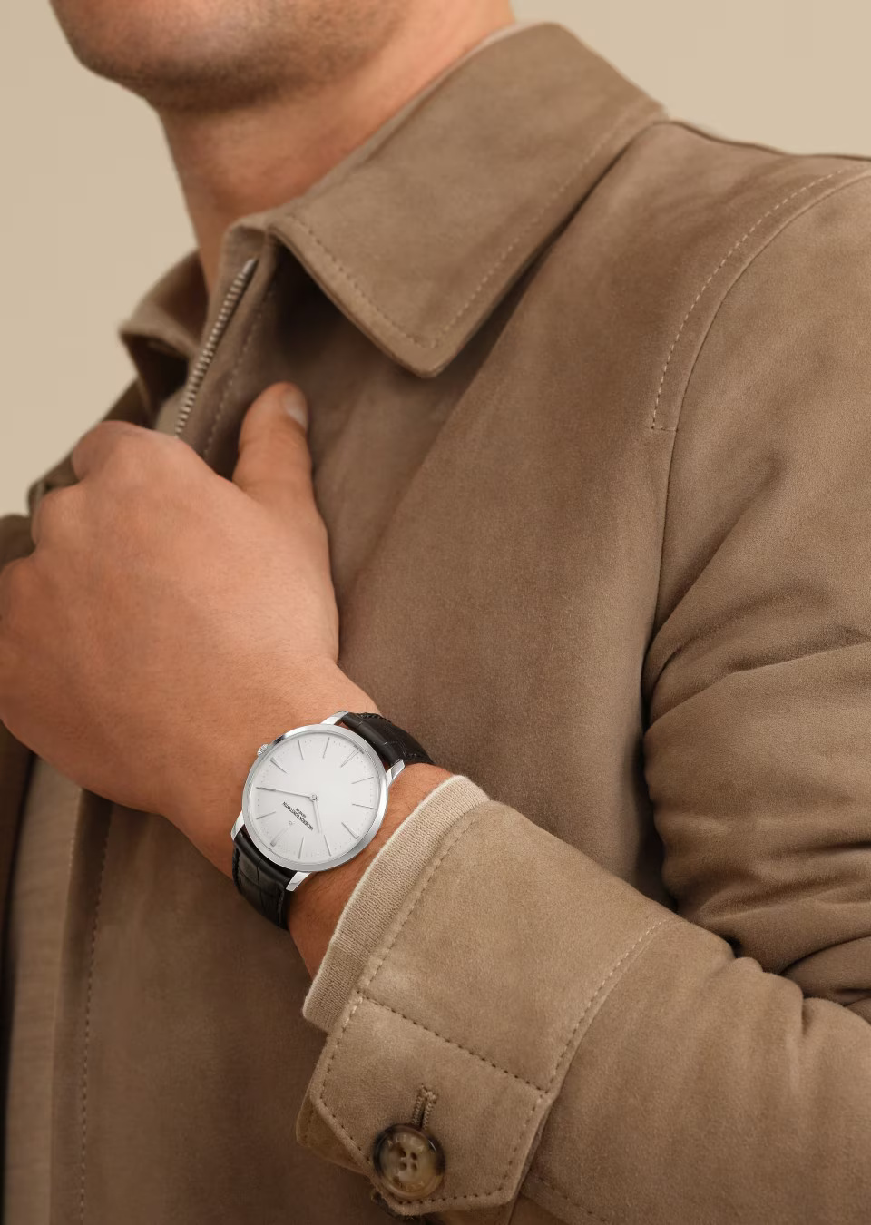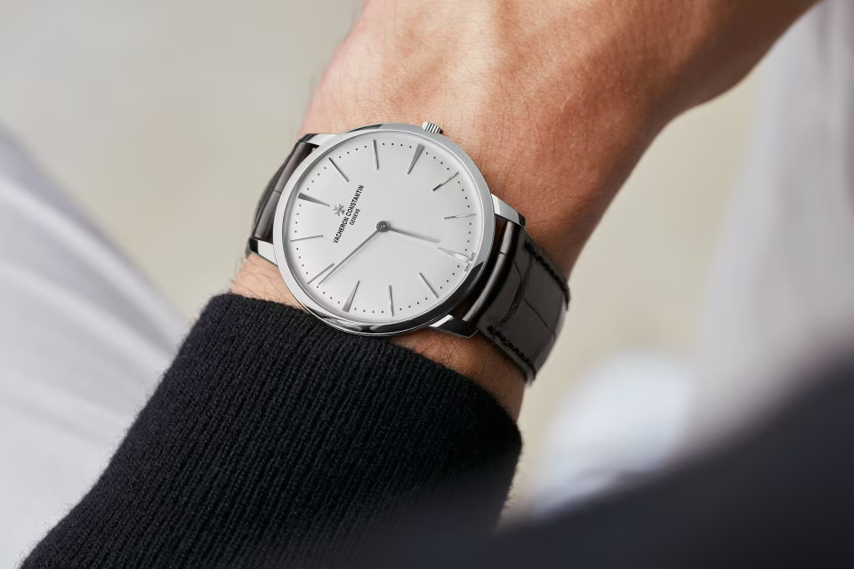 This 18K white gold watch combines purity of design with the essence of timekeeping. Inspired by the watches of the 1950s, the hour markers and hands gently follow the curve of the dial. Its slim case, just 6.80 millimeters thick, has a solid back allowing the watch to be personalized with the owner’s choice of engraving. Its manually-wound movement is stamped with the Hallmark of Geneva, a guarantee of excellence and reliability.