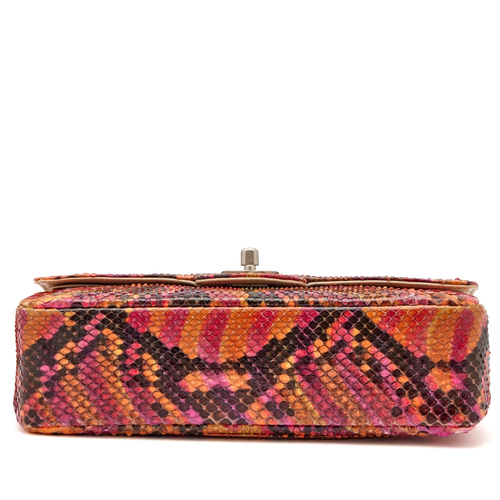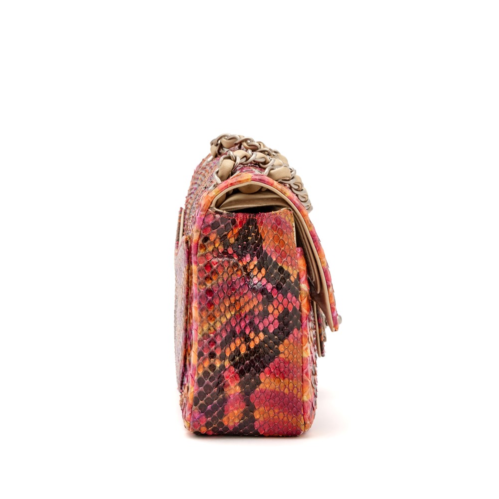 Chanel Pink and Multicolor Python Small Classic Double Flap Brushed Silver Hardware, 1997-1999