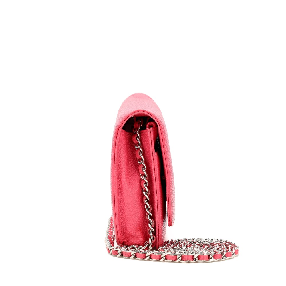Chanel Pink Caviar Button Logo Wallet on Chain, 2012-2013
