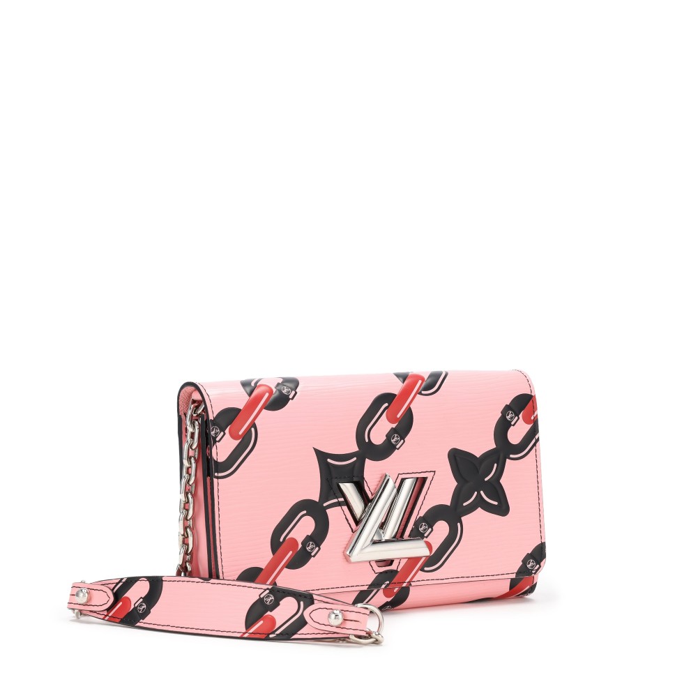 Louis Vuitton Pink Epi Leather Chain Flower Print Twist Wallet on Chain Silver Hardware, 2016