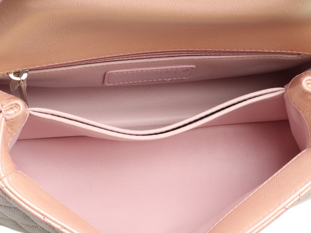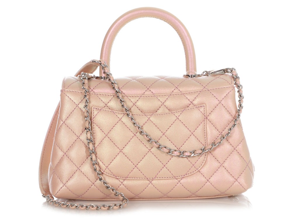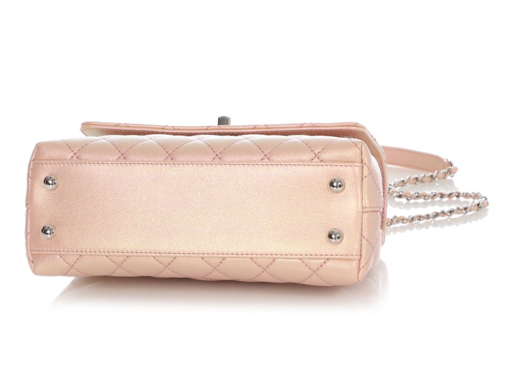 Chanel Pink Iridescent Quilted Caviar Mini Coco Top Handle Silver Hardware, 2021