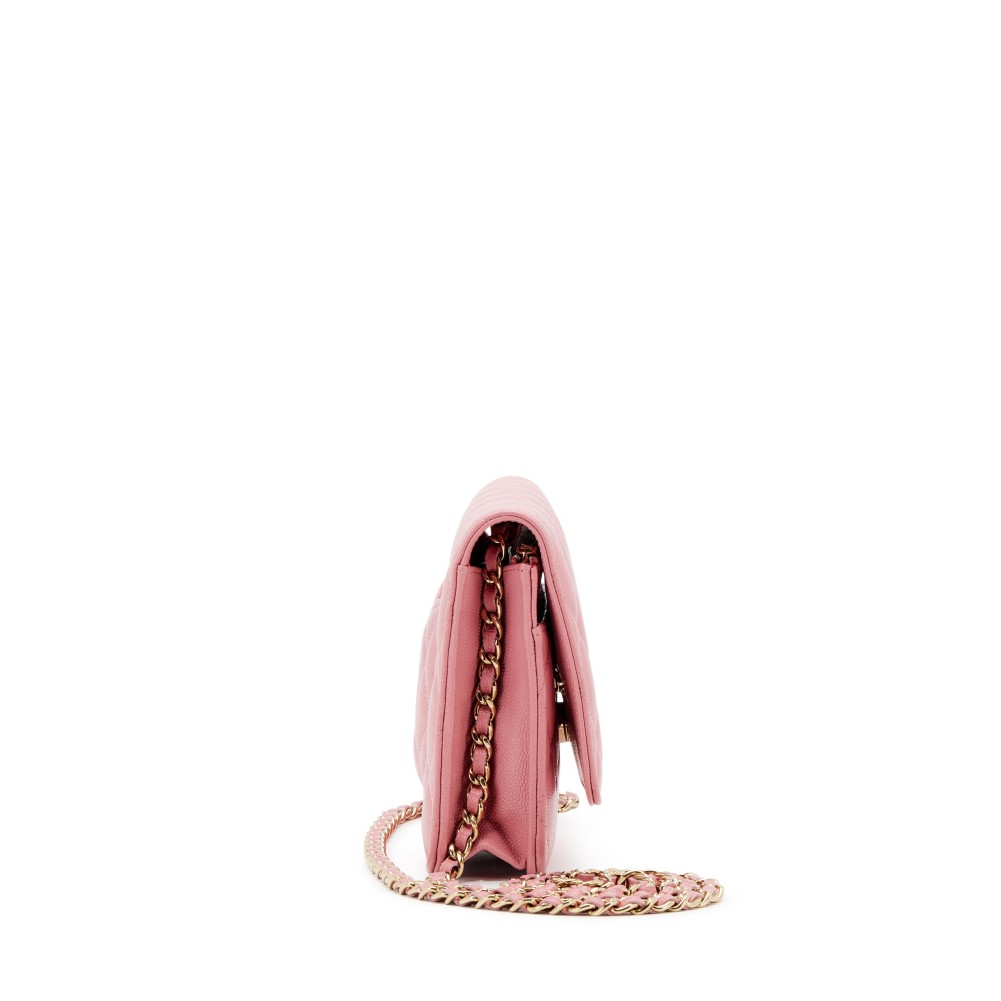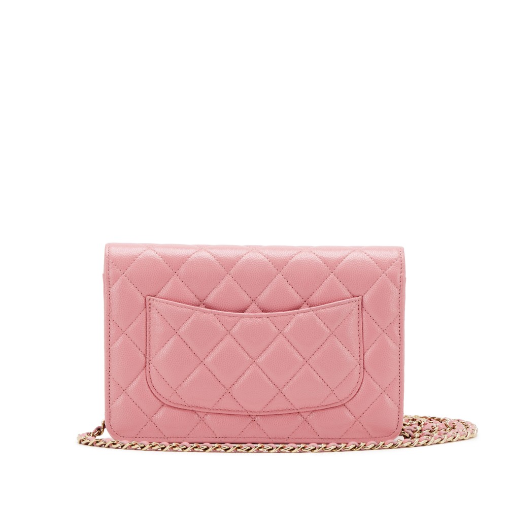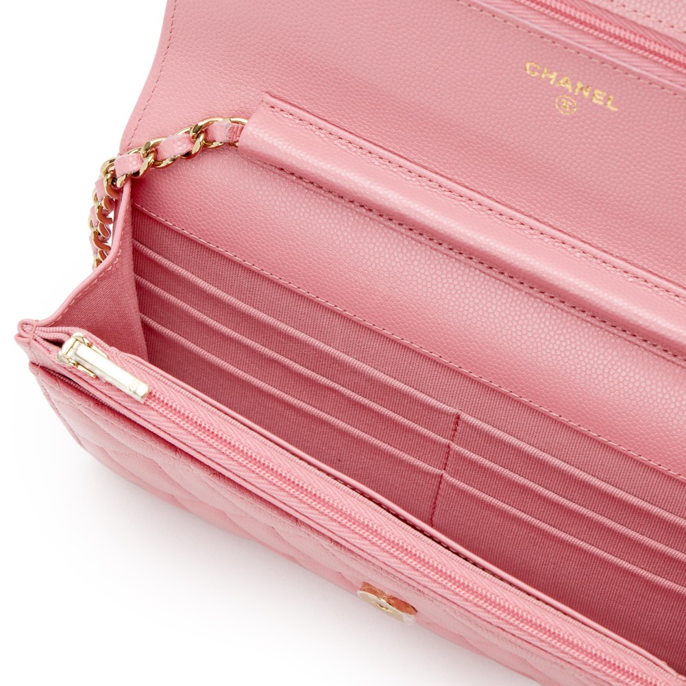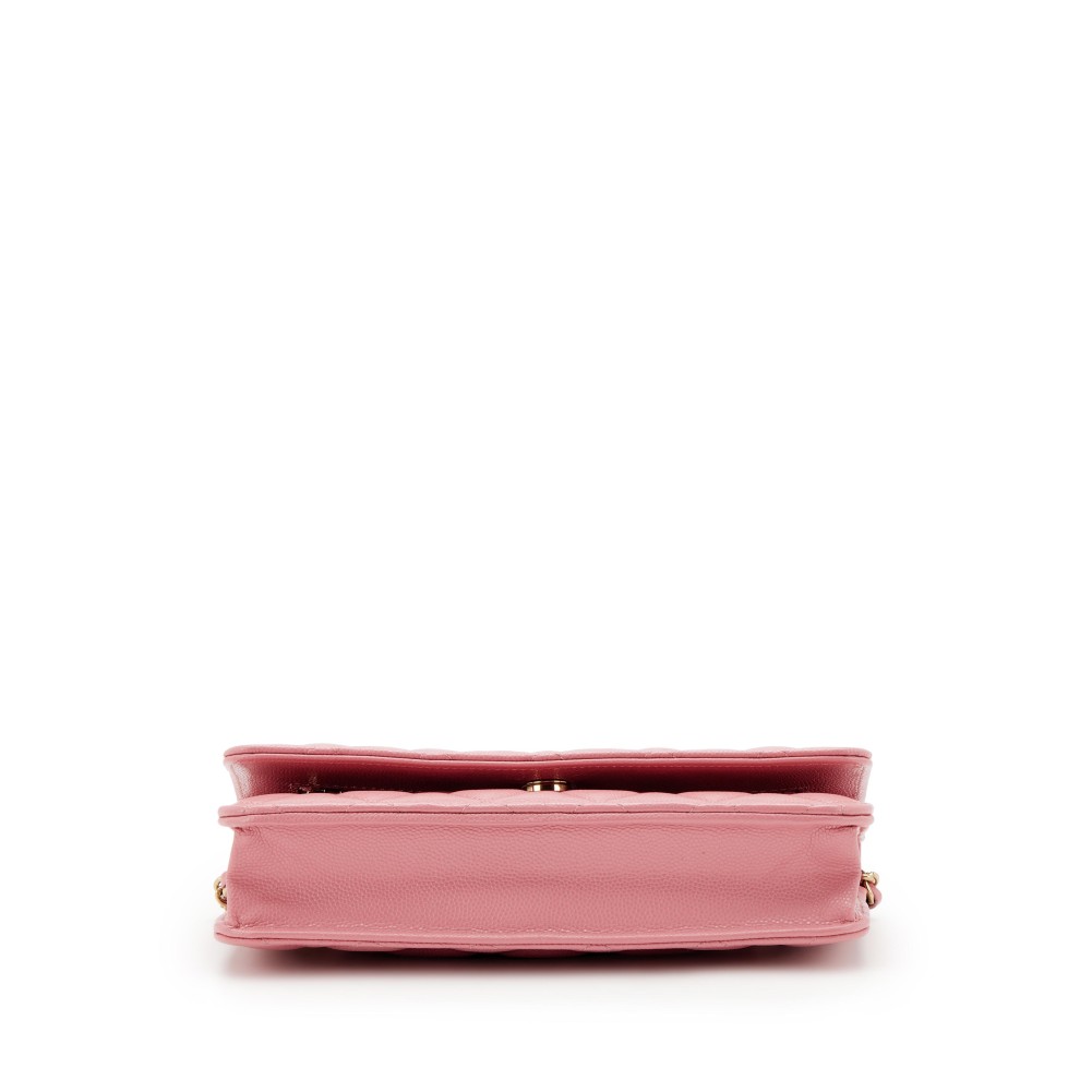 Chanel Pink Quilted Caviar Classic Wallet on Chain Gold Hardware, 2022