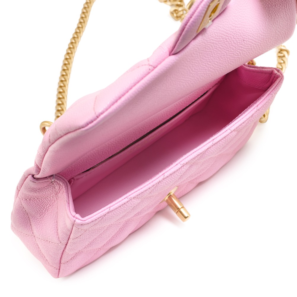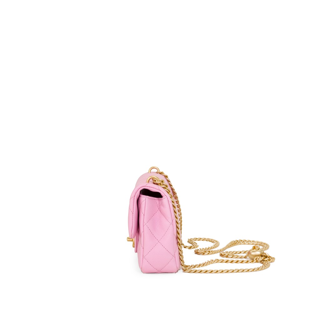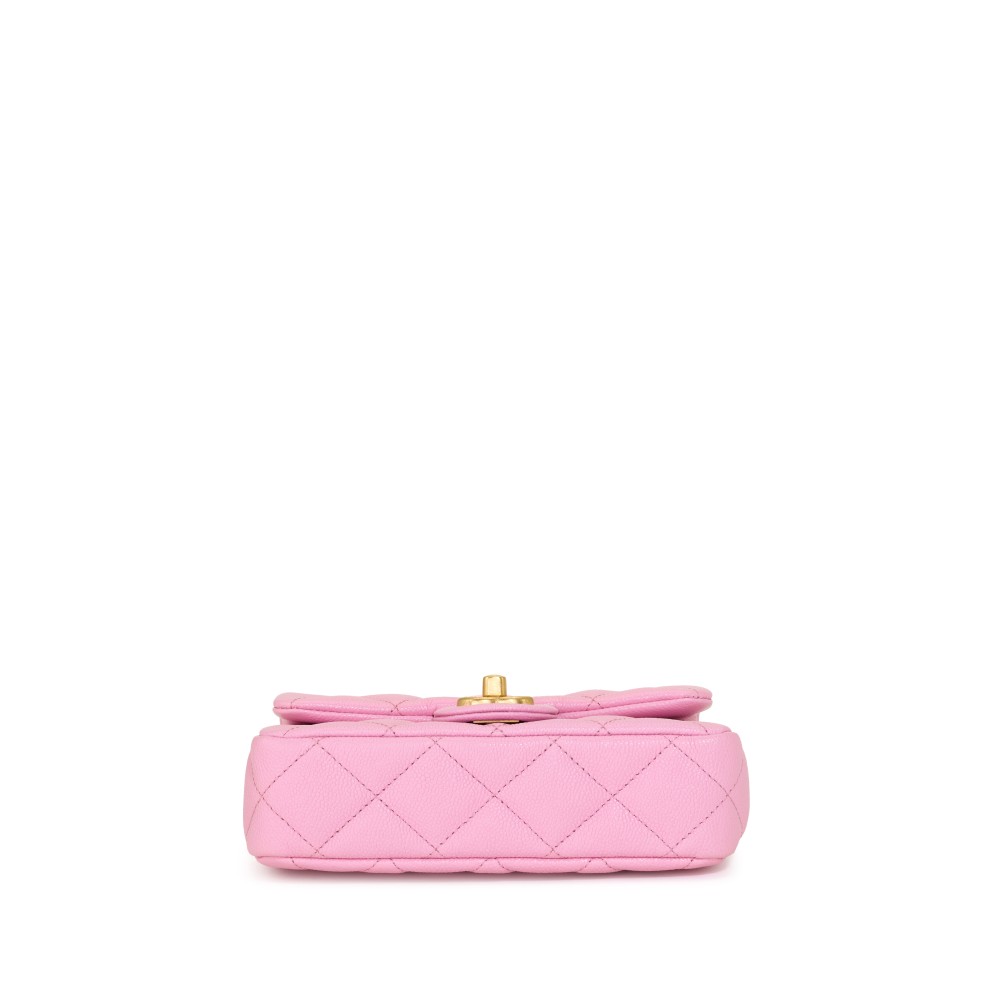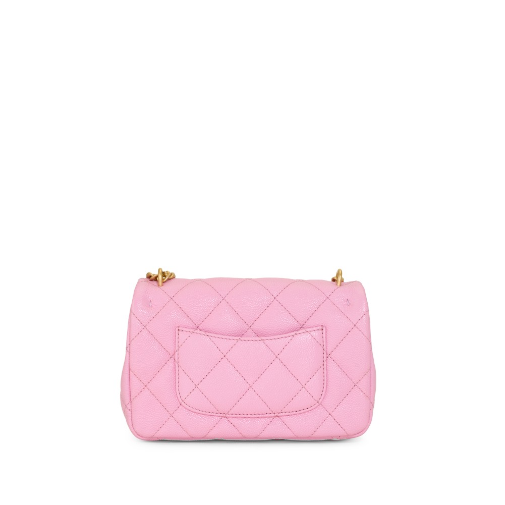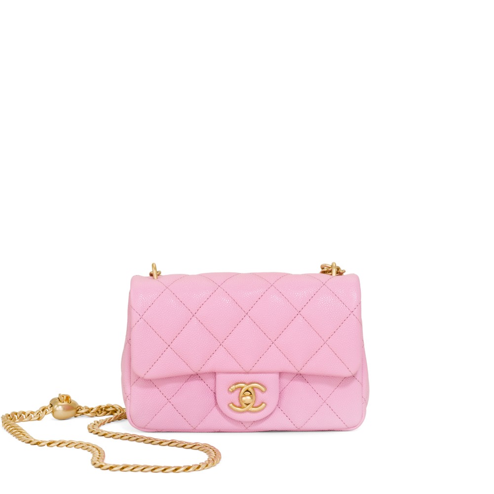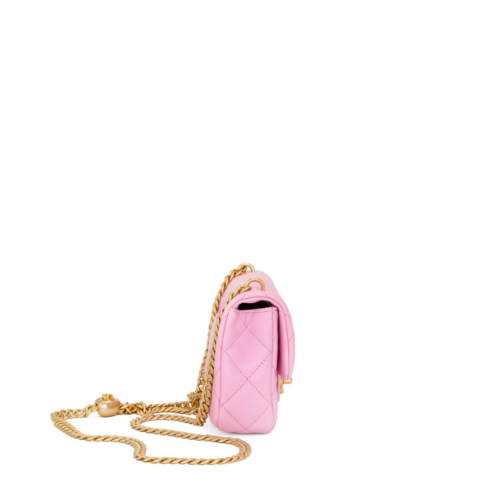 Chanel Pink Quilted Caviar Sweetheart Chain Mini Rectangular Classic Single Flap Aged Gold Hardware, 2023