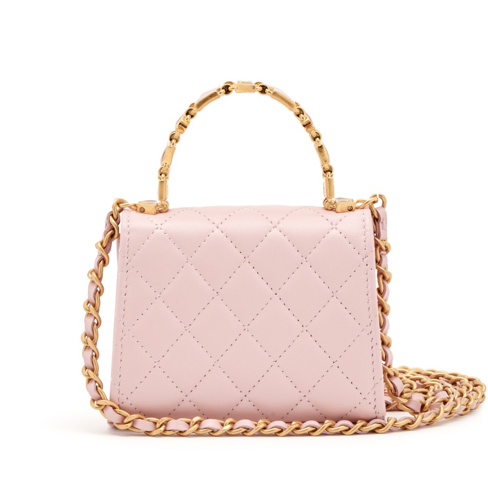 Chanel Pink Quilted Lambskin Enamel Micro Extra Mini Handle Clutch with Chain Brushed Gold Hardware, 2022