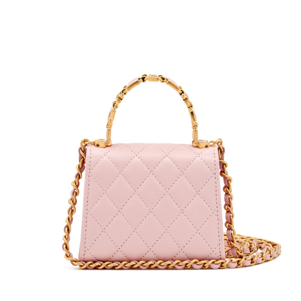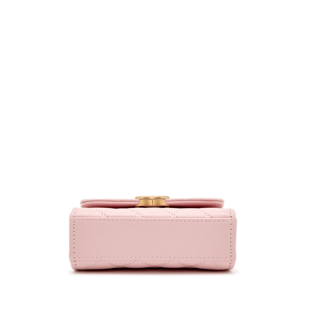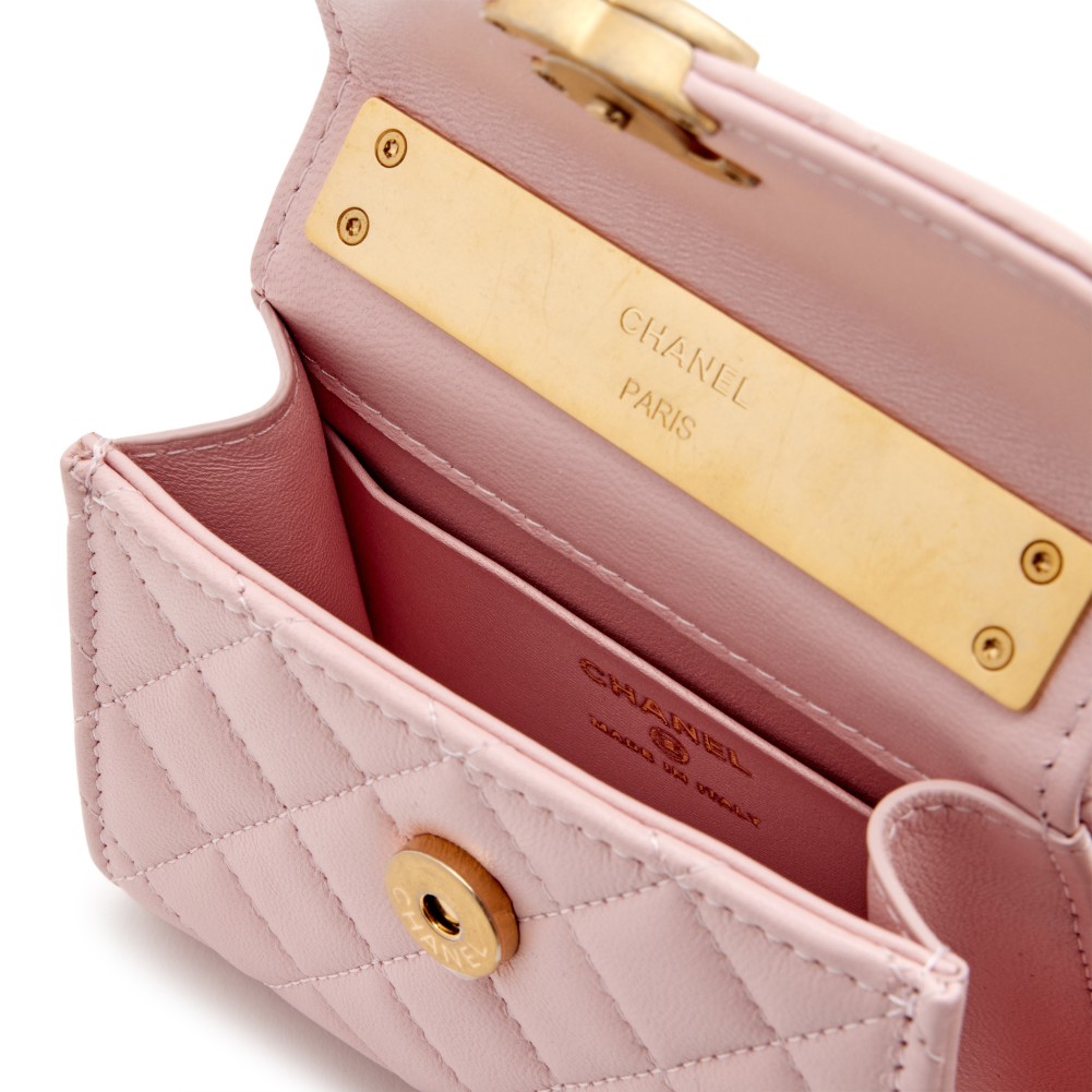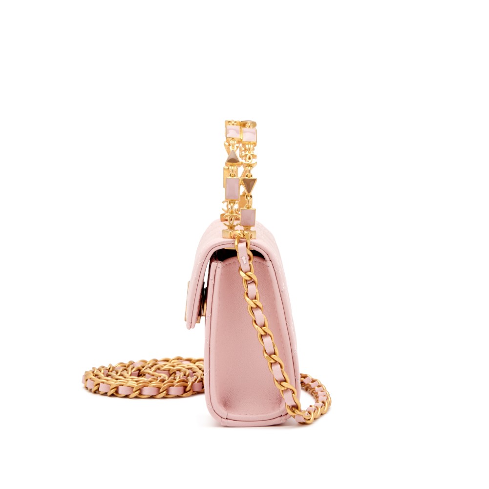 Chanel Pink Quilted Lambskin Enamel Micro Extra Mini Handle Clutch with Chain Brushed Gold Hardware, 2022
