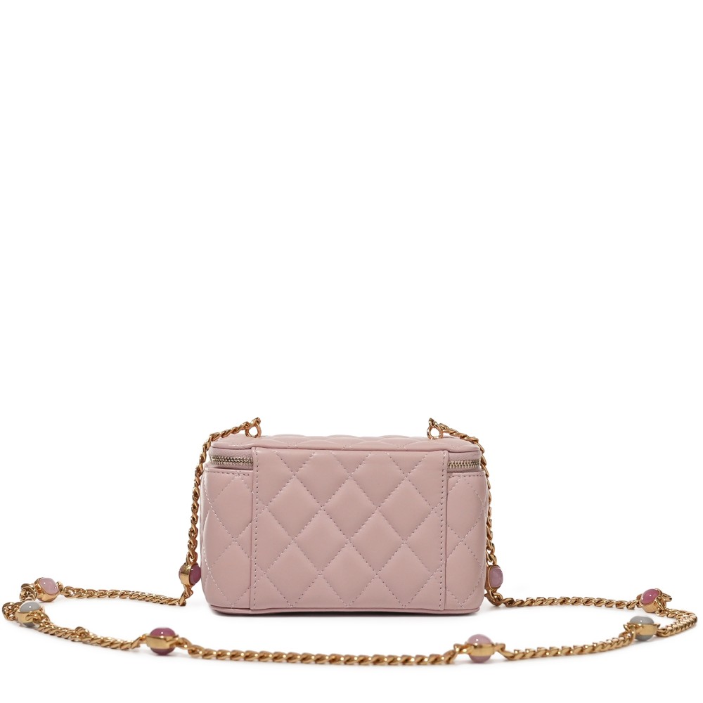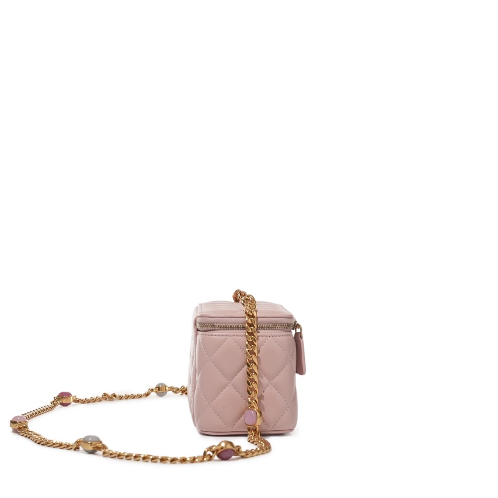 Chanel Pink Quilted Lambskin Gemstone Chain Vanity Case Gold Hardware, 2022