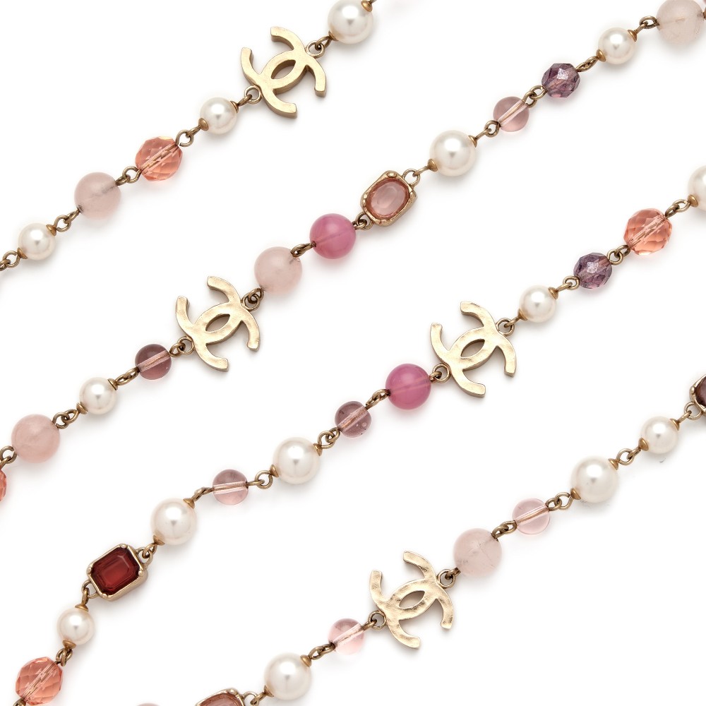 Chanel Pink Strass and Imitation Pearl CC Crystal Necklace, 2007