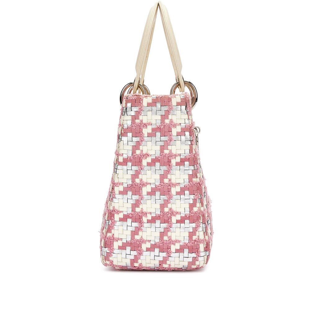 Christian Dior Pink, White and Silver Tweed Medium Lady Dior Silver Hardware, 2013